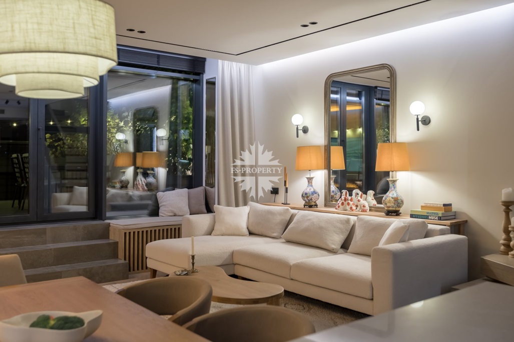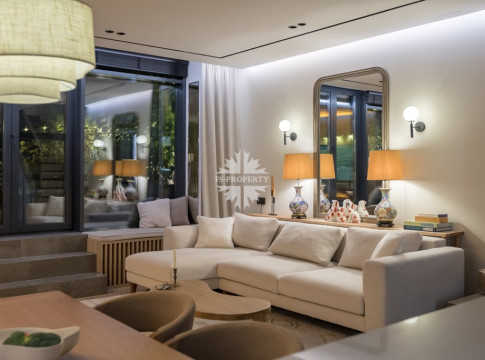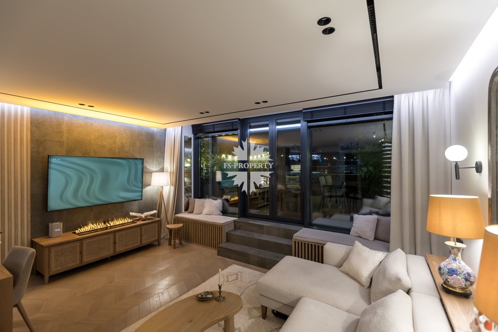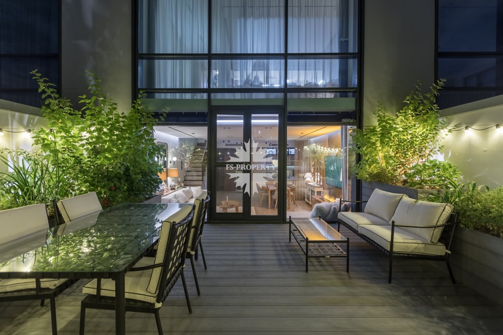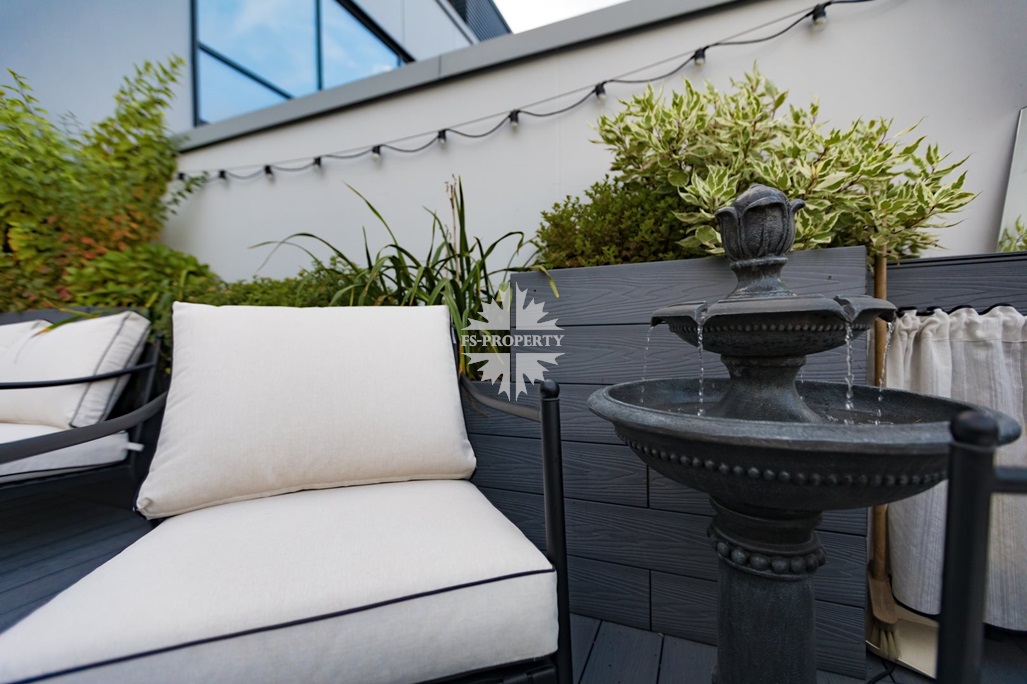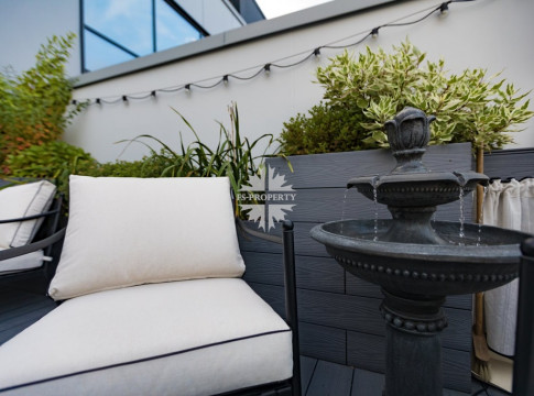 - уютная благоустроенная терраса 30 кв м, озеленение с автополивом, зона отдыха с мебелью, барбекю, атмосферное освещение и подсветка