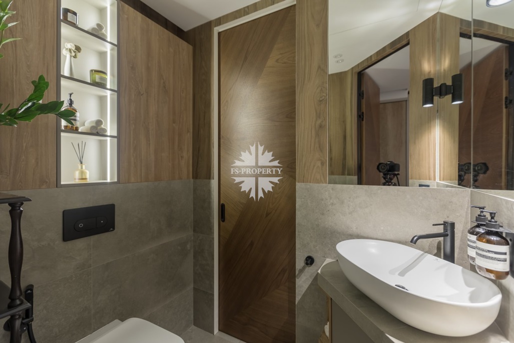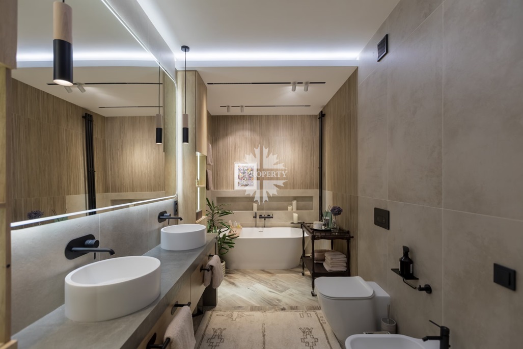 Высококачественная отделка с применением дорогих экологичных материалов. Мебель, освещение, техника и сантехника от ведущих мировых производителей (Германия, Италия).