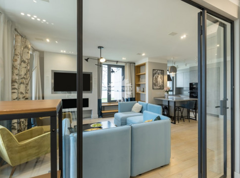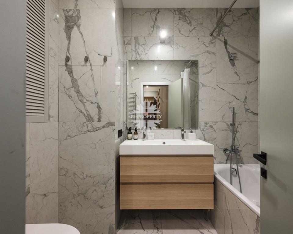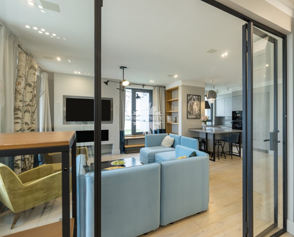 Функциональная планировка апартамента: кухня-столовая, гостиная, мастер-спальня, вместительная гардеробная, детская спальня/кабинет, 2 больших санузла, прихожая, открытая благоустроенная терраса.