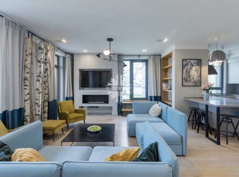 Функциональная планировка апартамента: кухня-столовая, гостиная, мастер-спальня, вместительная гардеробная, детская спальня/кабинет, 2 больших санузла, прихожая, открытая благоустроенная терраса.