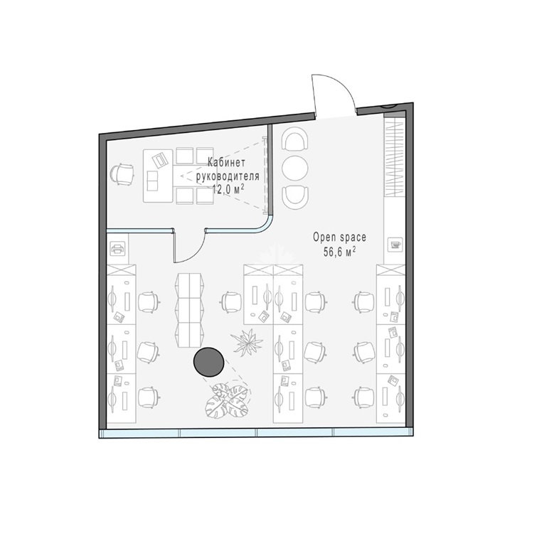 Свободная планировка и минимальное количество несущих конструкций позволяют максимально эффективно зонировать пространство. Панорамное остекление обеспечивает максимальное количество естественного освещения в дневное время и динамичный вид на город в вечернее.