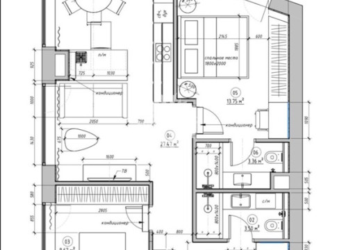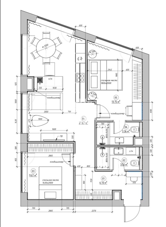 Планировкой предусмотрено: кухня-гостиная, 2 спальни, 2 санузла с душевыми, много шкафов.