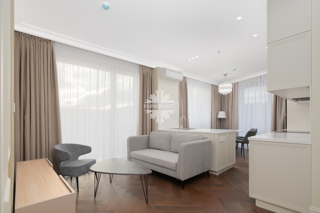 Светлый, стильный апартамент с окнами в пол в новом доме премиум-класса.