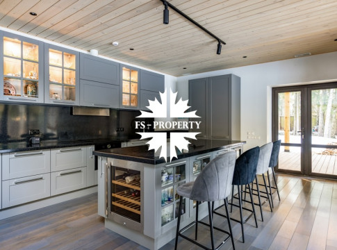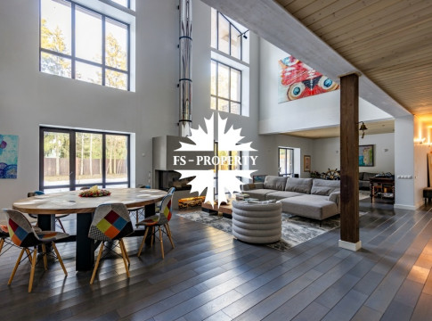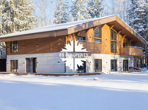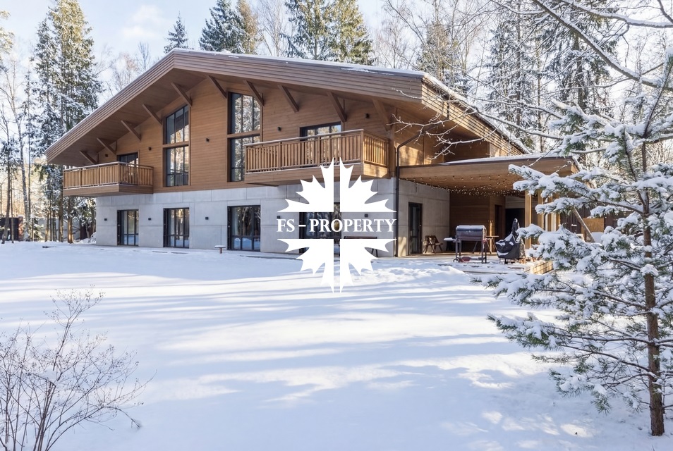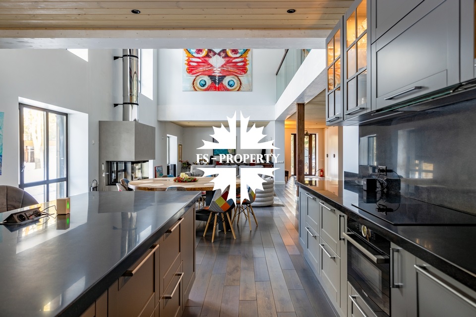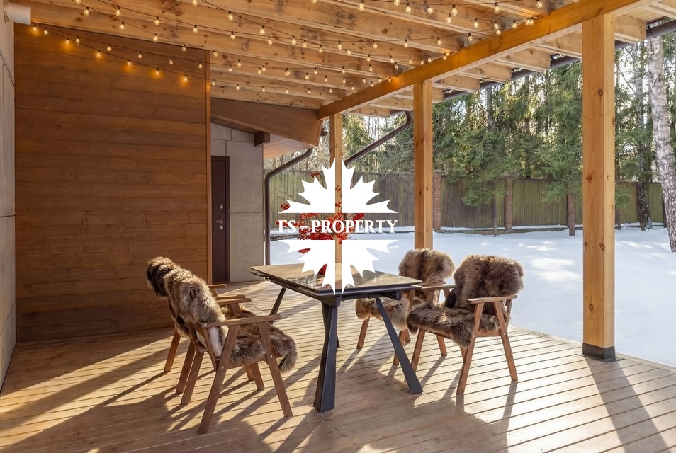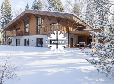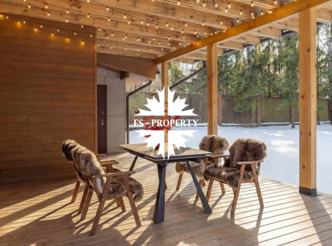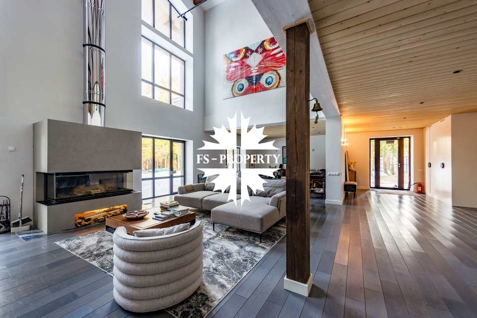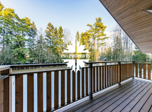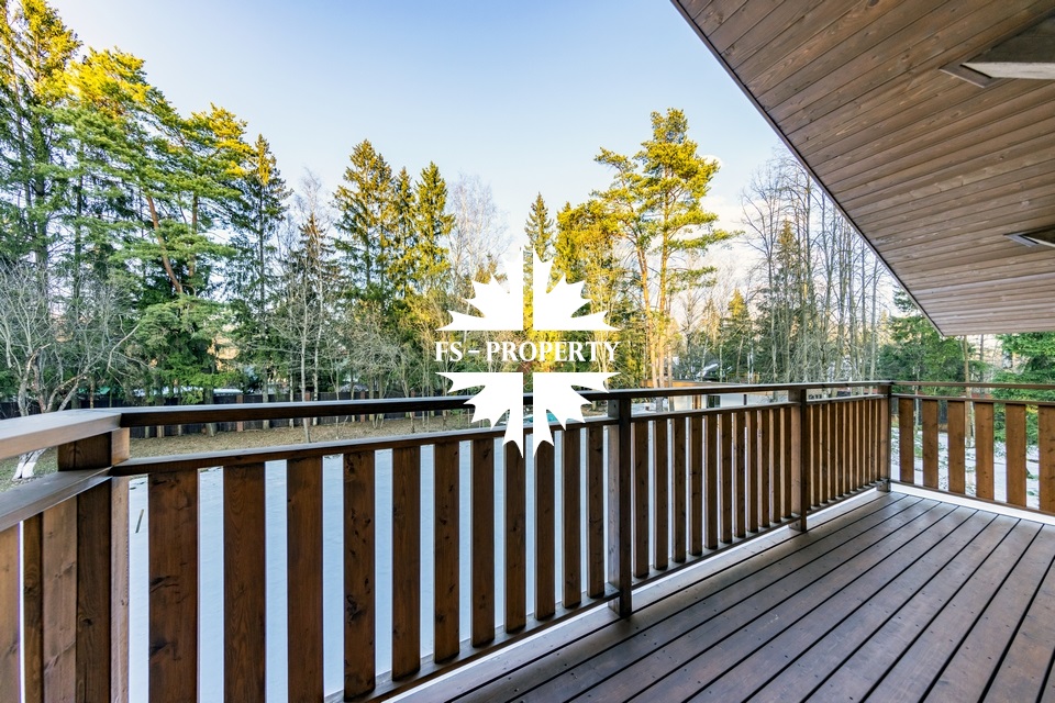 Двухэтажный коттедж 500 метров с террасой и домом для персонала, расположен на приватном лесном участке 53 сотки с вековыми соснами и белыми грибами. Планировочным решением предусмотрено 4 спальни, 5 с\у, камин, сауна, летняя терраса вокруг дома, скважина с артезианской водой, воздушное отопление, высота второго света 9 метров, система умного дома.