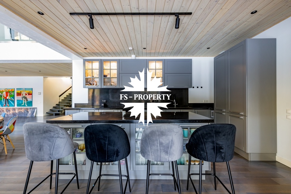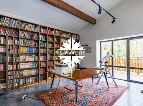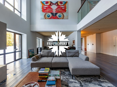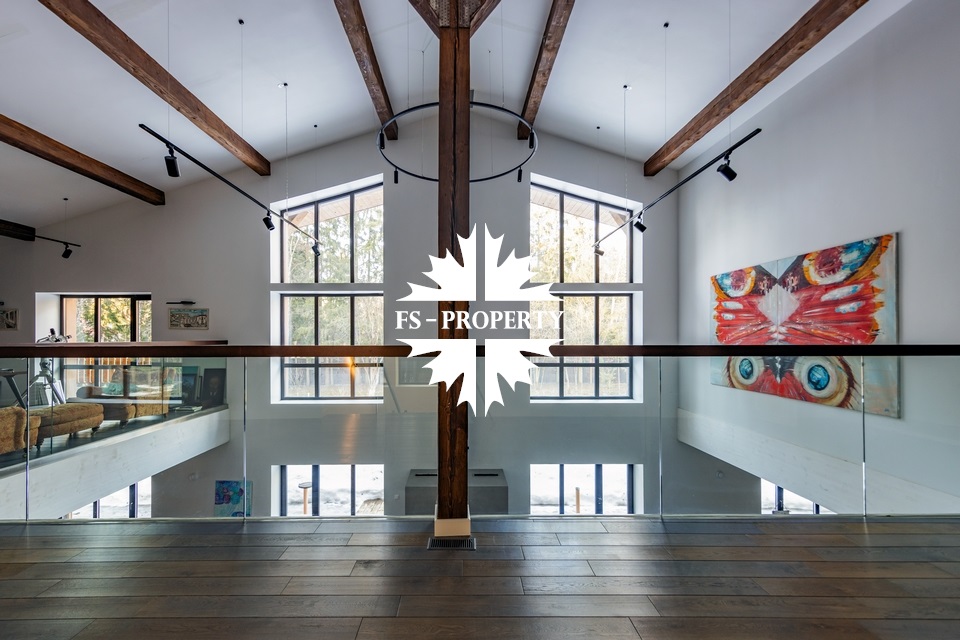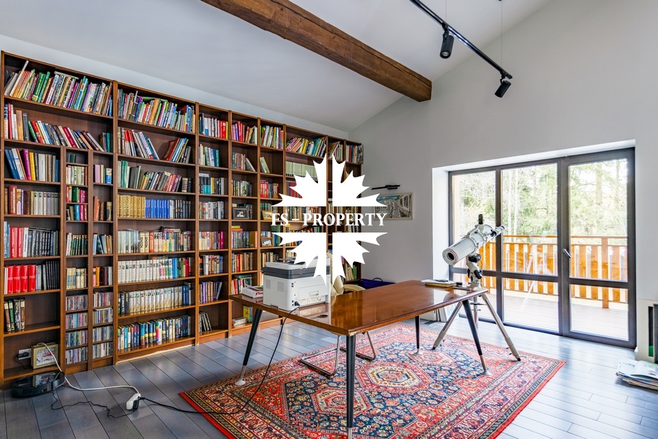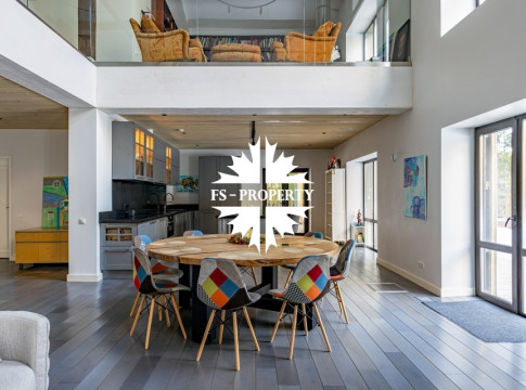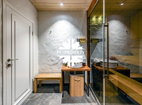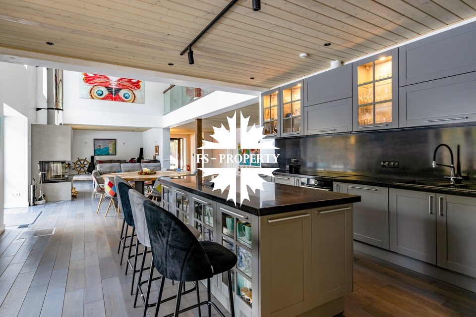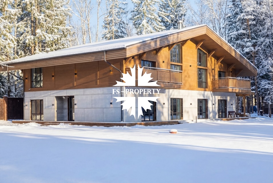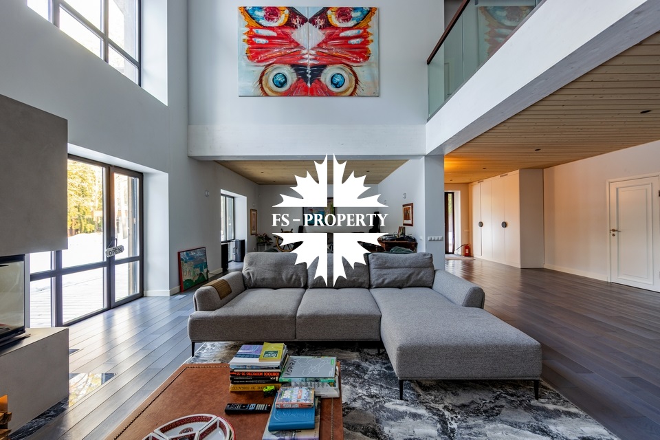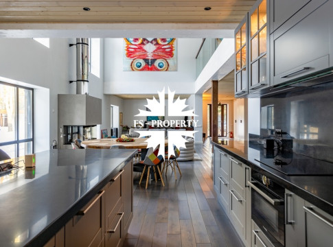 Двухэтажный коттедж 500 метров с террасой и домом для персонала, расположен на приватном лесном участке 53 сотки с вековыми соснами и белыми грибами. Планировочным решением предусмотрено 4 спальни, 5 с\у, камин, сауна, летняя терраса вокруг дома, скважина с артезианской водой, воздушное отопление, высота второго света 9 метров, система умного дома.