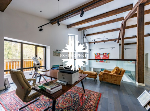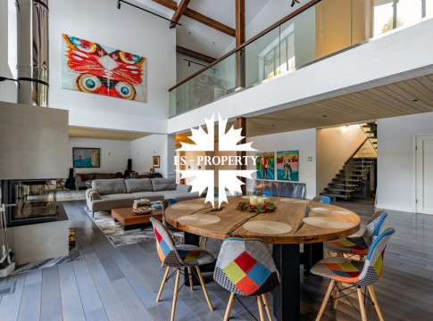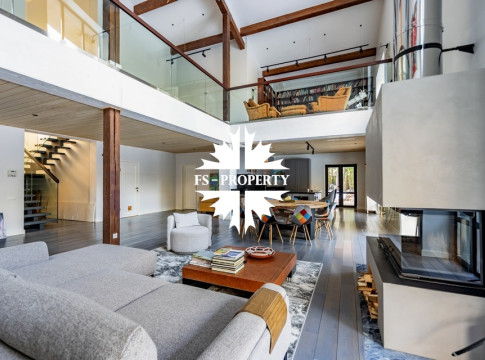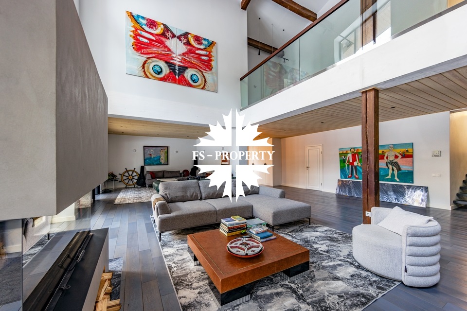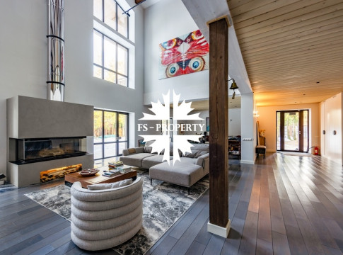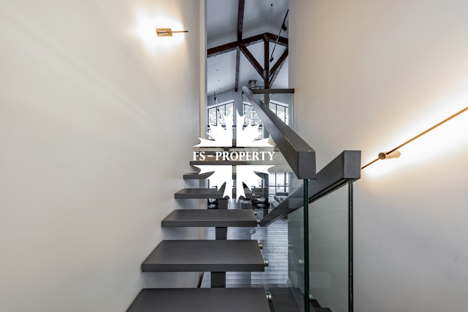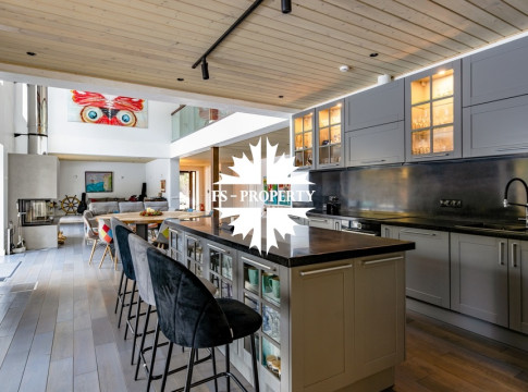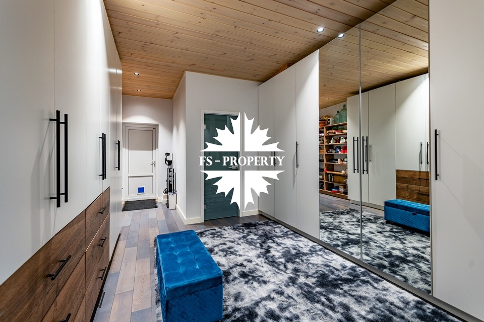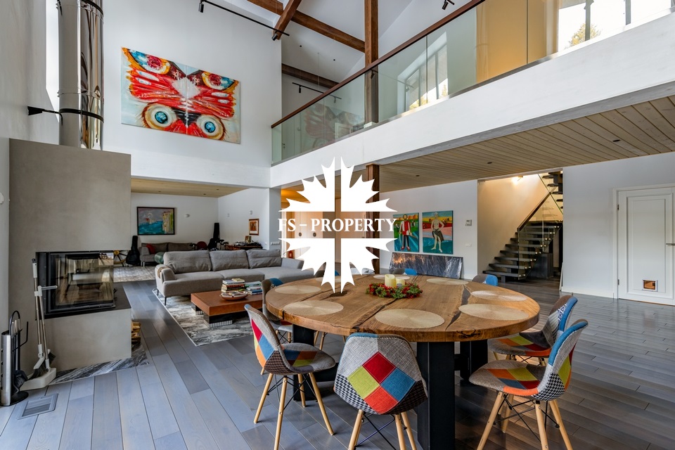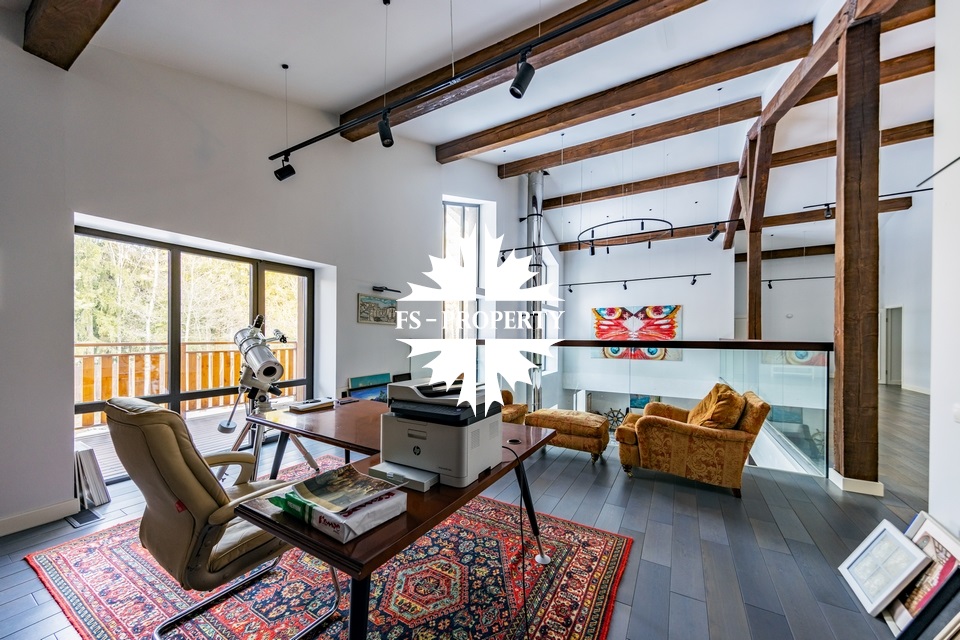 Двухэтажный коттедж 500 метров с террасой и домом для персонала, расположен на приватном лесном участке 53 сотки с вековыми соснами и белыми грибами. Планировочным решением предусмотрено 4 спальни, 5 с\у, камин, сауна, летняя терраса вокруг дома, скважина с артезианской водой, воздушное отопление, высота второго света 9 метров, система умного дома.