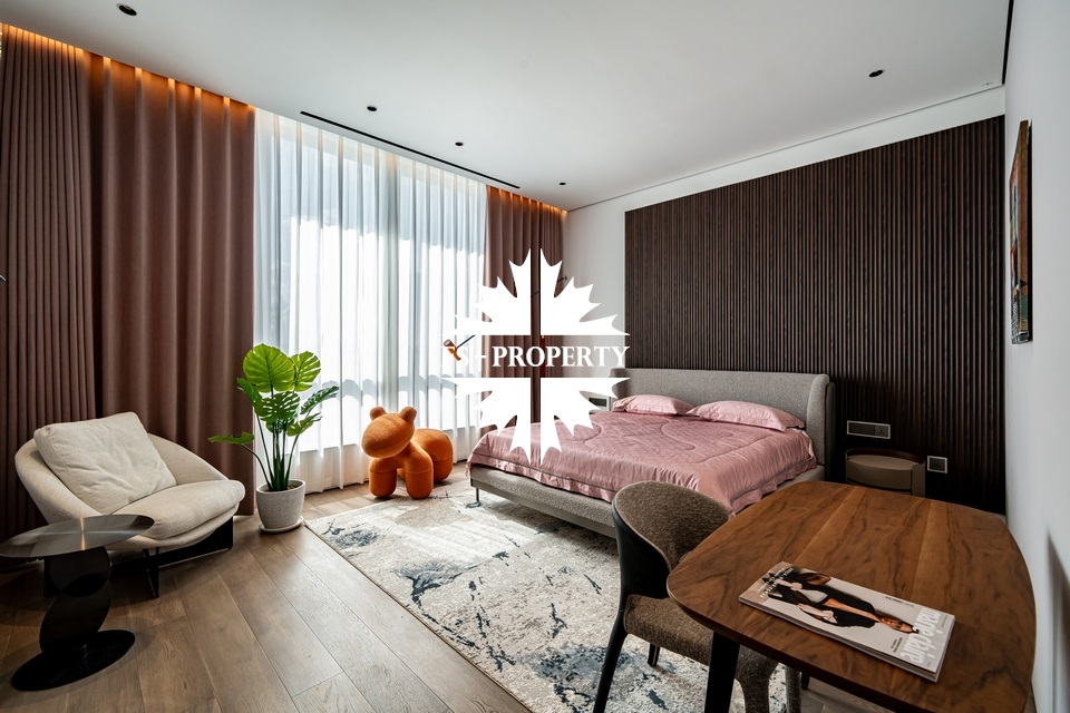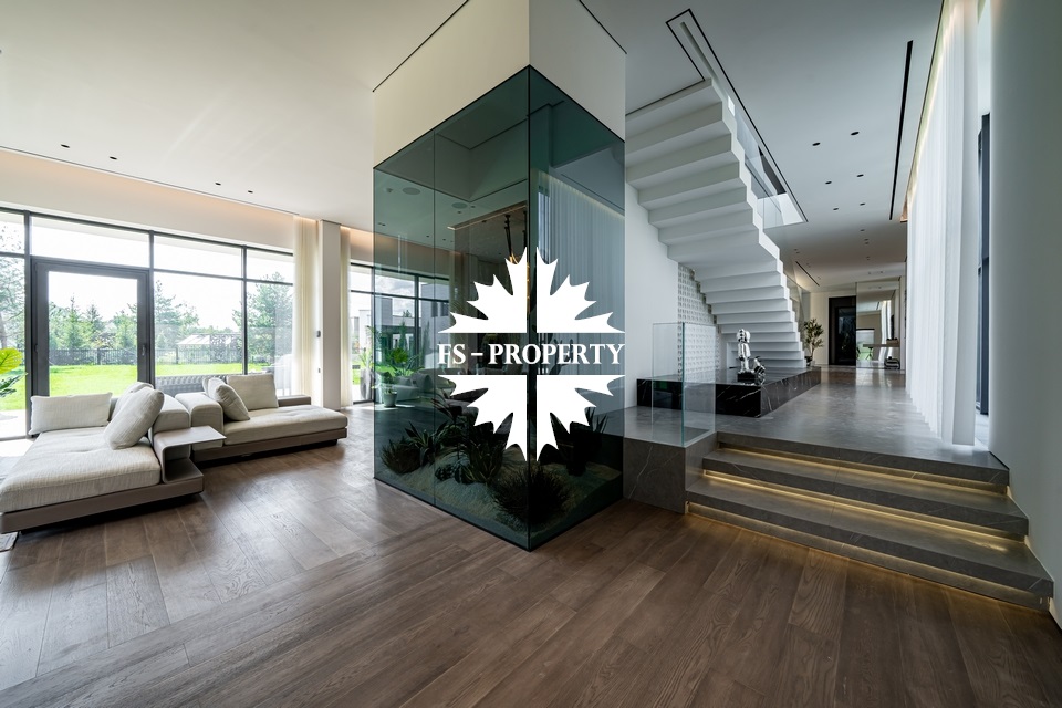 В коттеджном поселке «Березки», всего в 17 км от Рублево-Успенского шоссе, на участке в 24 сотки, расположилась изысканная двухэтажная вилла площадью 698 кв. м, созданная для тех, кто ценит комфорт и внимание к деталям. Дом уже ждет своих новых хозяев с отделкой «под тапочки», позволяя сразу окунуться в атмосферу уюта и роскоши, не теряя времени на ремонт. Вилла включает 5 просторных спален, стильную кухню-столовую с техникой от мировых брендов V-Zug, Asko и Sirius, а также элегантный холл с гардеробной. Интерьеры, выполненные с использованием натурального мрамора из Греции и Италии, создают утонченную атмосферу, а камин Astov дарит тепло и уют. Особое удовольствие доставит сауна с панорамным остеклением, выполненная из американского абаша и липы, с печью Harvia — идеальное место для релаксации.