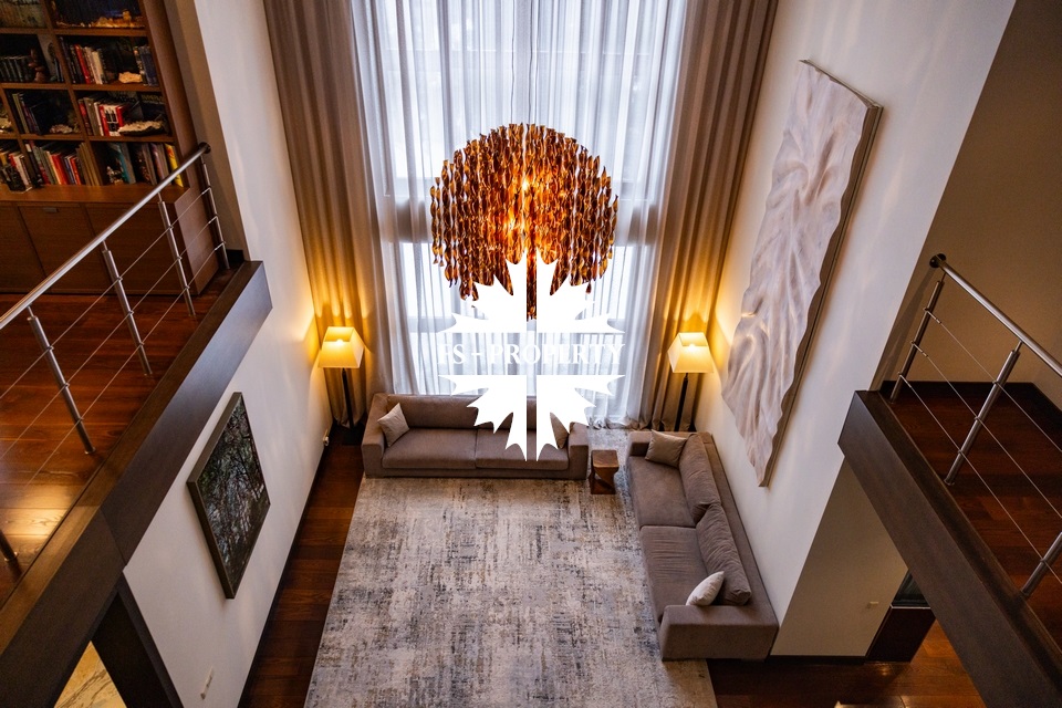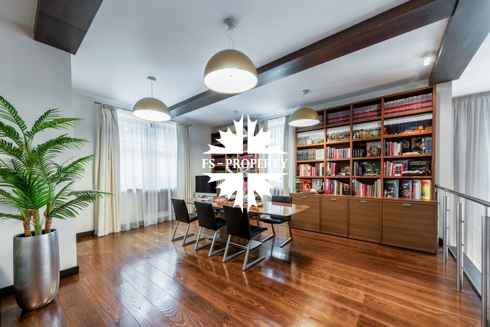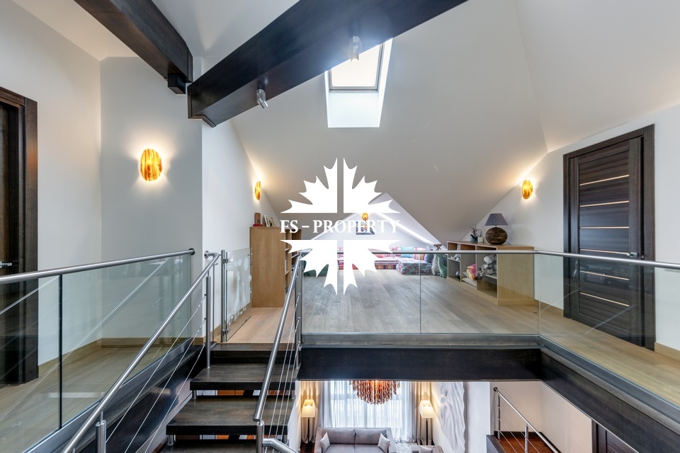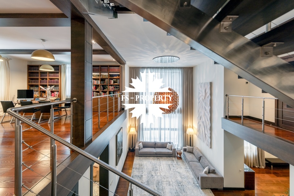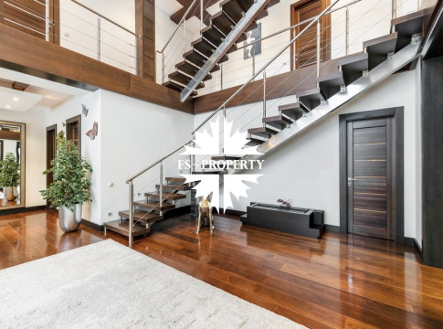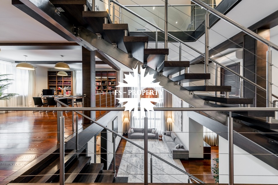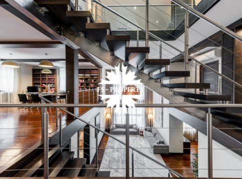 Центральным акцентом интерьера стала эффектная «парящая» лестница - изящный архитектурный элемент, подчеркивающий современный характер резиденции. Сердцем дома является впечатляющая гостиная, вокруг которой выстроена вся внутренняя композиция пространства. Просторная, наполненная светом зона с высокими потолками и вторым светом создает атмосферу открытости и уюта одновременно. Планировочные решения продуманы до мелочей и создают баланс между общественными и приватными зонами. Особого внимания заслуживает мастер-зона: просторная мастер-спальня дополнена собственной гардеробной, ванной комнатой и будуаром. В доме также предусмотрена уютная библиотечная зона - идеальное пространство для чтения, работы и спокойного отдыха. На третьем этаже организована просторная детская территория - полноценное отдельное пространство для учебы, игр и отдыха.