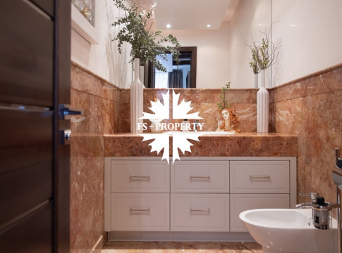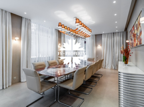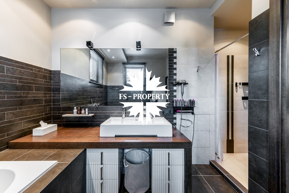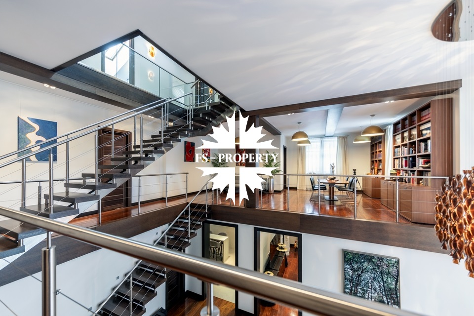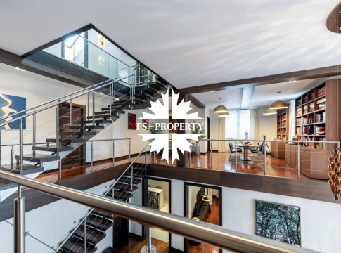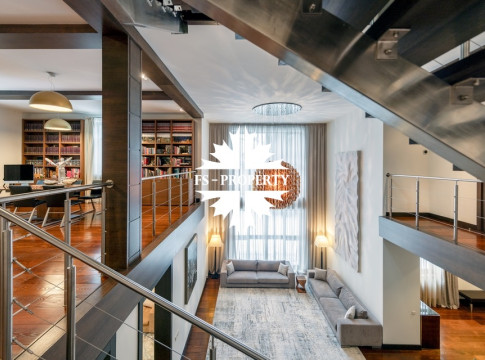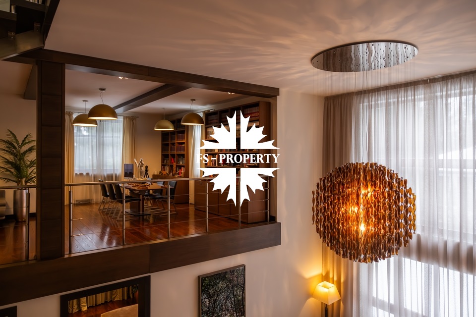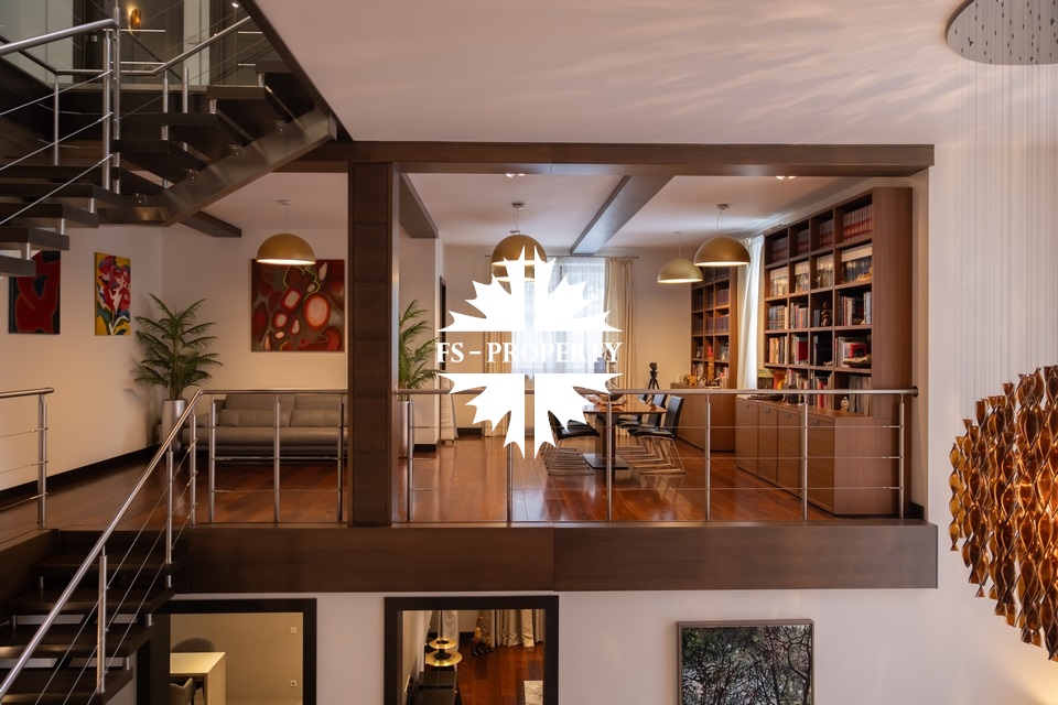 Центральным акцентом интерьера стала эффектная «парящая» лестница - изящный архитектурный элемент, подчеркивающий современный характер резиденции. Сердцем дома является впечатляющая гостиная, вокруг которой выстроена вся внутренняя композиция пространства. Просторная, наполненная светом зона с высокими потолками и вторым светом создает атмосферу открытости и уюта одновременно. Планировочные решения продуманы до мелочей и создают баланс между общественными и приватными зонами. Особого внимания заслуживает мастер-зона: просторная мастер-спальня дополнена собственной гардеробной, ванной комнатой и будуаром. В доме также предусмотрена уютная библиотечная зона - идеальное пространство для чтения, работы и спокойного отдыха. На третьем этаже организована просторная детская территория - полноценное отдельное пространство для учебы, игр и отдыха.
