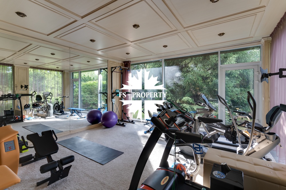 Цокольный этаж: прихожая, кинотеатр, санузел, хамам, баня, джакузи, раздевалка, холодильник для хранения шуб, чемоданная, бильярдная, спортзал с видом и выходом на участок, кабинет, техническая кухня.