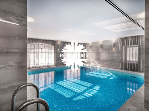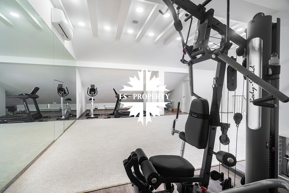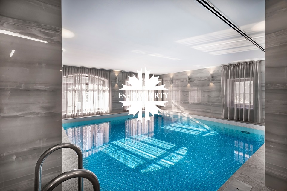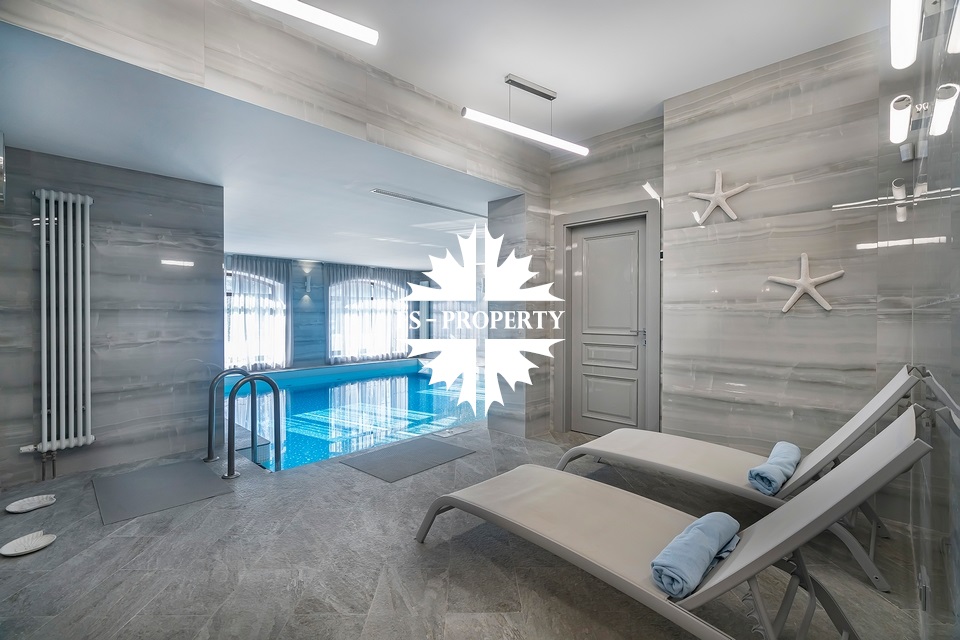 Первый этаж: холл с гардеробной, гостиная, кухня-столовая, гостевой с/у, гостевая комната/домашний кинотеатр, SPA-зона (бассейн 35 кв.м. с противотоком, сауна, душевая, с/у), постирочная с техникой Miele. Второй этаж: мастер-блок с гардеробной и ванной, 2 детские спальни с ванными комнатами.