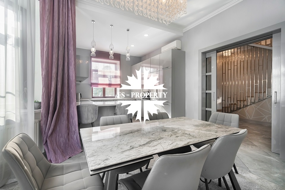 На продажу предлагается дом 470 кв.м. под ключ с современным ремонтом на участке 30 соток в элитном коттеджном поселке "Гринфилд". Дом полностью готов к проживанию. На приватном земельном участке помимо основного дома расположен гараж 120 кв.м. с навесом на 2 м/м, посажены плодовые деревья и кустарники.