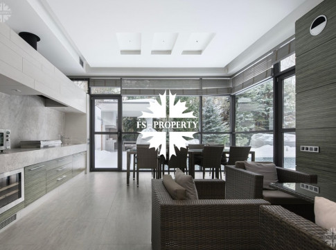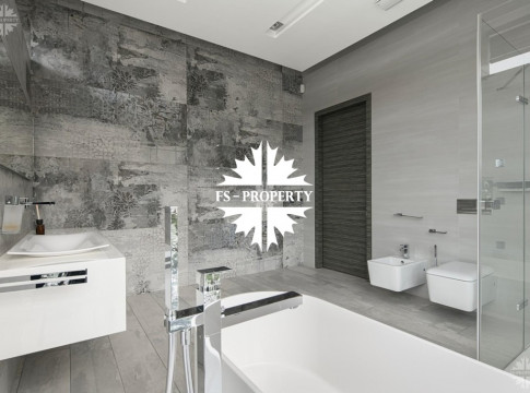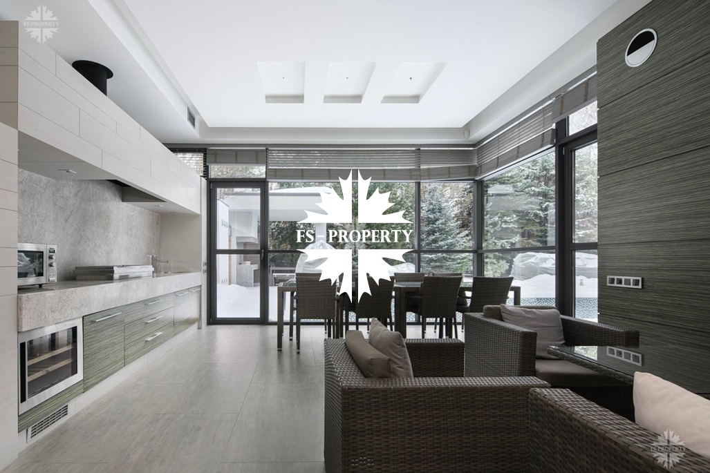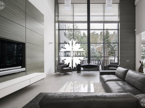 Выполнена великолепная отделка в современном стиле в спокойных тонах. Второй свет, высокие потолки, панорамные окна. Элегантный, уютный дом. Статусный поселок, респектабельные соседи.