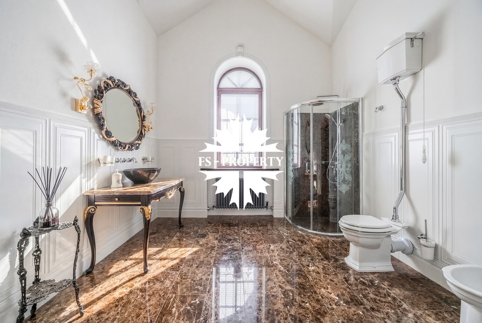 Загородный дом в классическом стиле площадью 611 кв.м в охраняемом поселке "Весна" - всего в 16 км от МКАД по Рублево-Успенскому шоссе. Внутренняя отделка выполнена исключительно итальянскими материалами наивысшего качества. Основой интерьера стали дубовая лестница и паркет, массивные вишнёвые двери и бронированные окна из массива дуба, создающие атмосферу благородства и долговечности. Каждая деталь интерьера подобрана с безупречным вкусом и представляет лучшие итальянские и мировые бренды. Кухня оснащена гарнитуром Francesco Molon и техникой Gaggenau. Мебель в помещениях — от Andrea Fanfani, Duresta, Provasi, Savio Fermino, Francesco Molon и Zanaboni. Сантехника Devon & Devon, осветительные приборы Mechini, Chelini, Grifoni и текстиль Loris Zanca дополняют дом. Особый ширм придают ковры: на первом этаже — иранский шёлк ручной работы, на втором — Ralph Lauren.