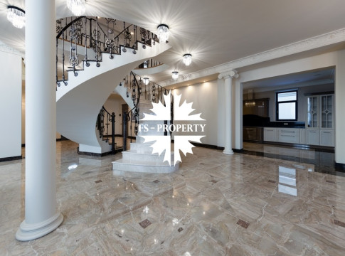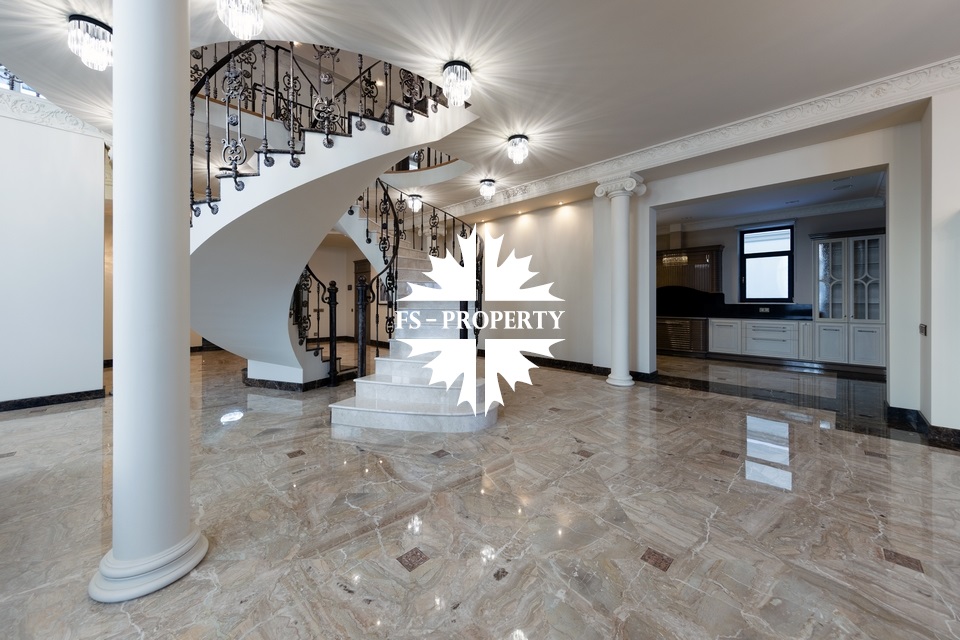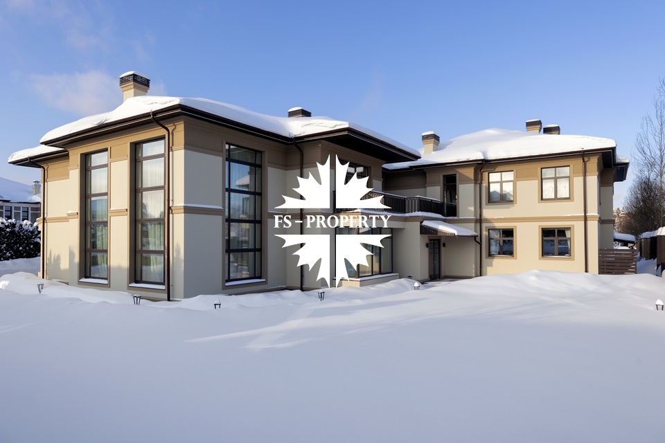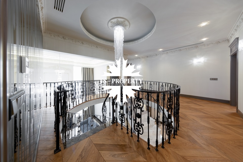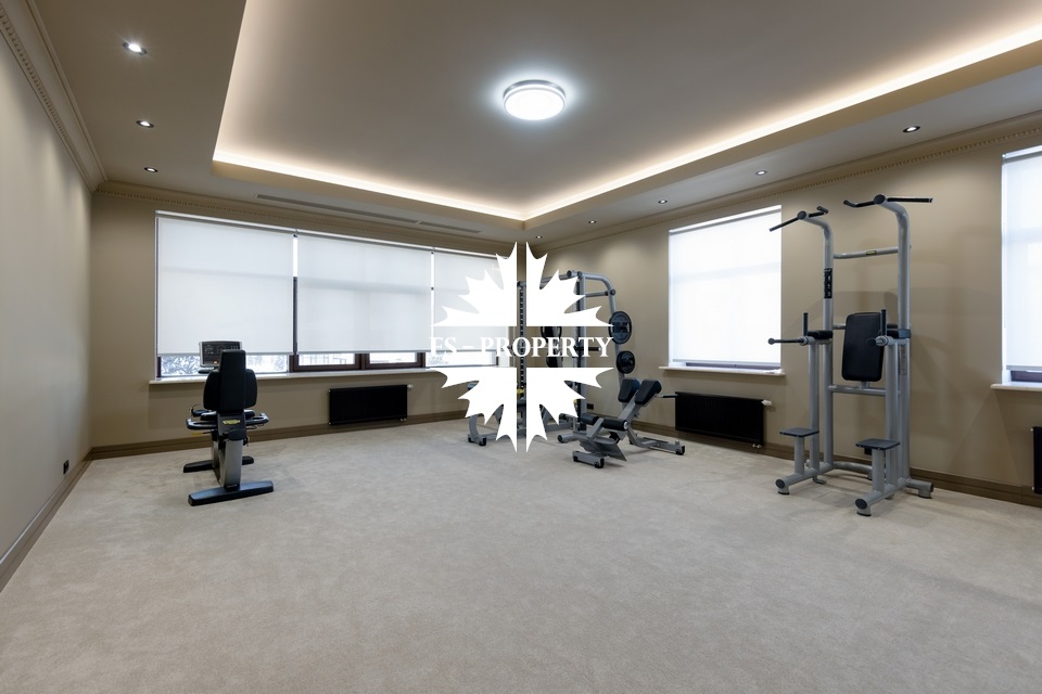 Предлагается к продаже современный стильный коттедж в охраняемом коттеджном посёлке с развитой инфраструктурой в 27 км от МКАД по Рублево-Успенскому шоссе, с удобным выездом на платную трассу. Роскошный трехуровневый дом, площадью 960 м2, расположен на участке ровной формы площадью 26,83 м2 с живописным ландшафтным дизайном. На территории сохранены крупные хвойные деревья, дополнительно высажены садовые декоративные. Отдельно на участке построена баня 250 м2 , с комнатой отдыха, камином и тренажерным залом.
