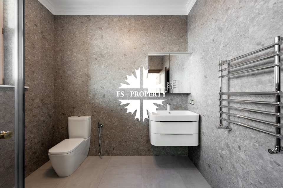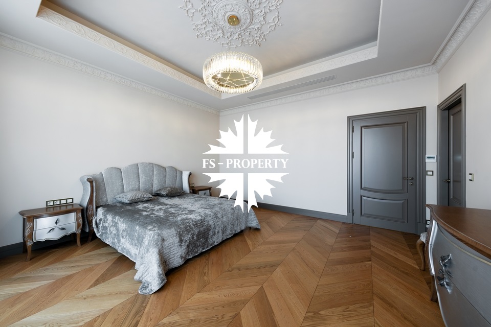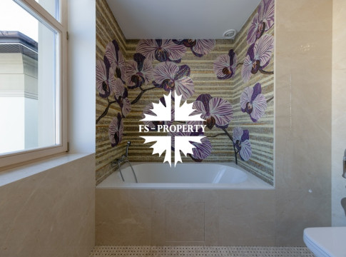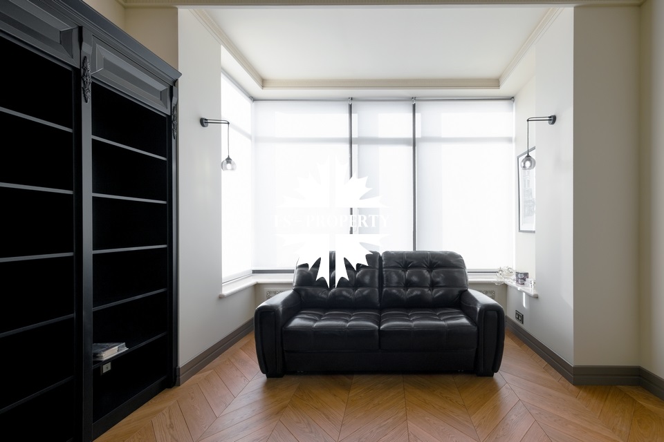 Вся мебель изготовлена под заказ, установлены деревянные стеклопакеты, немецкий лифт, сантехника европейских брендов. Достойная отделка в стиле современной классики с уникальными элементами декора ручной работы.