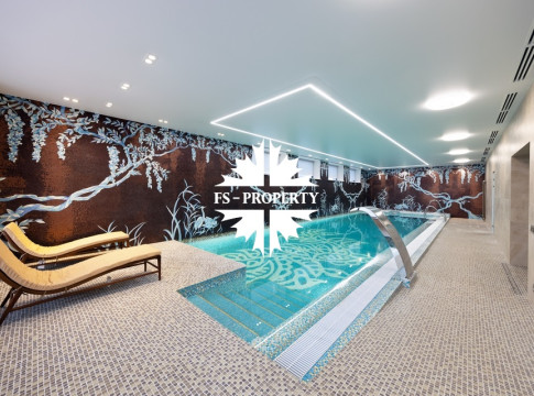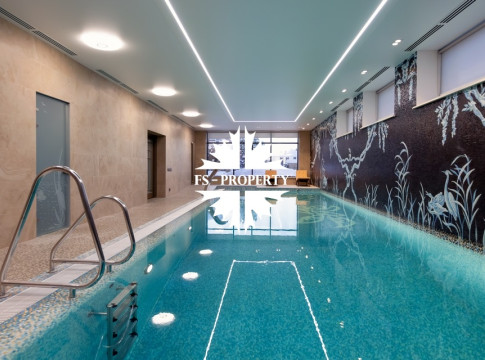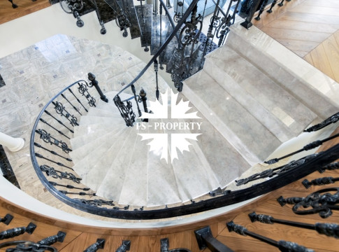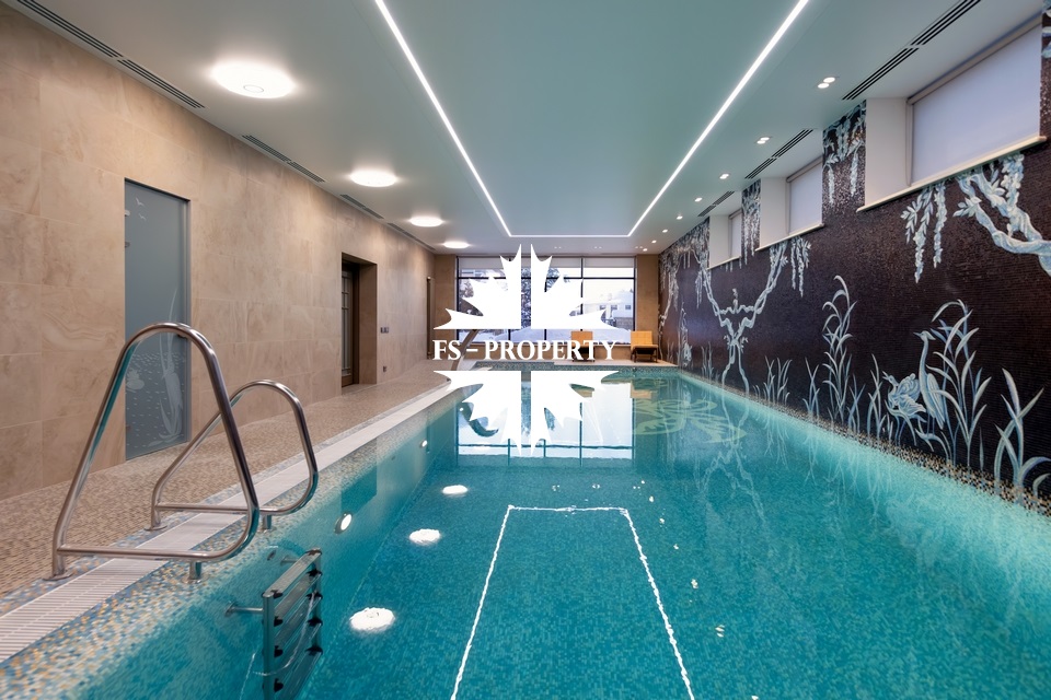 - 1 этаж: гардеробная, гостевой с/у, кабинет, каминный зал с камином и высокими потолками, кухня-столовая, комната свободного назначения, бассейн 16 м, хаммам, с/у, душевая.