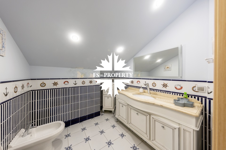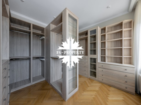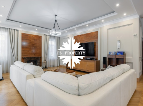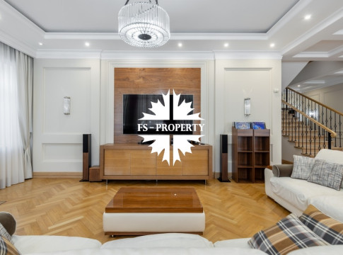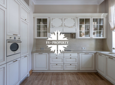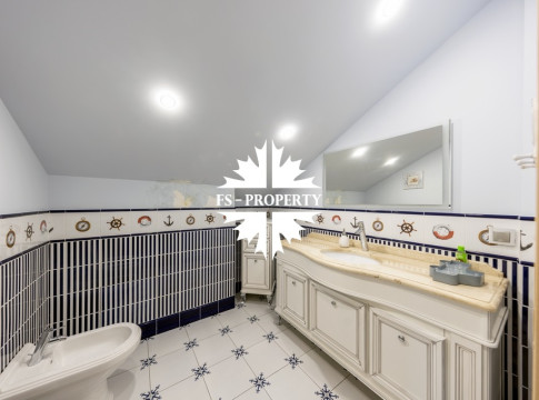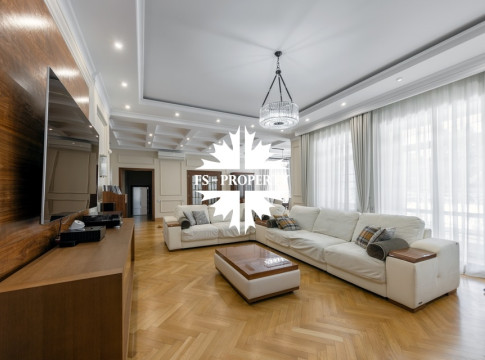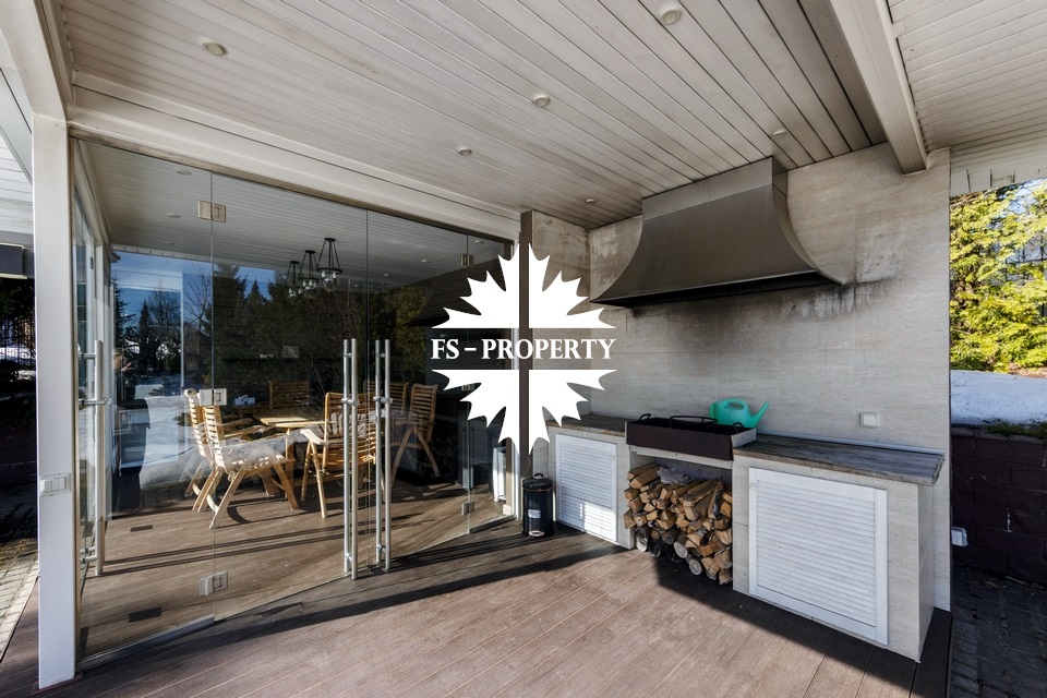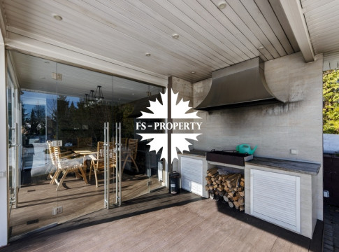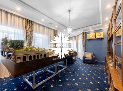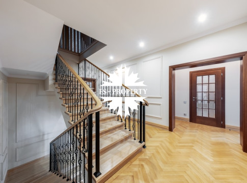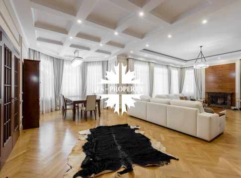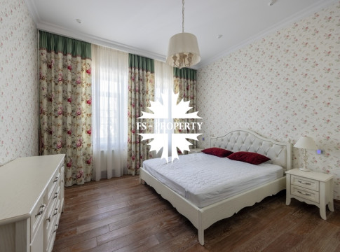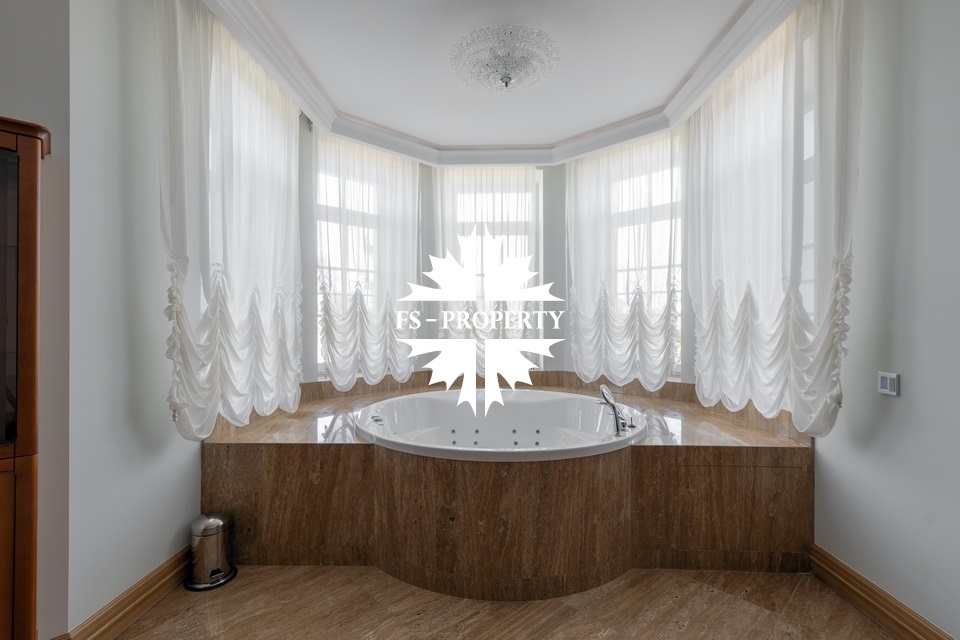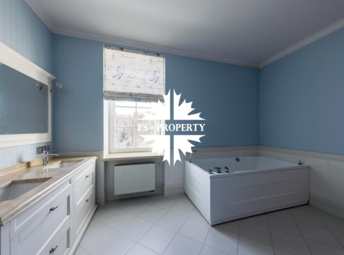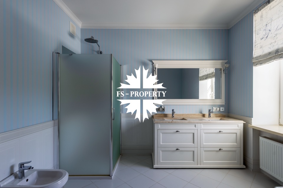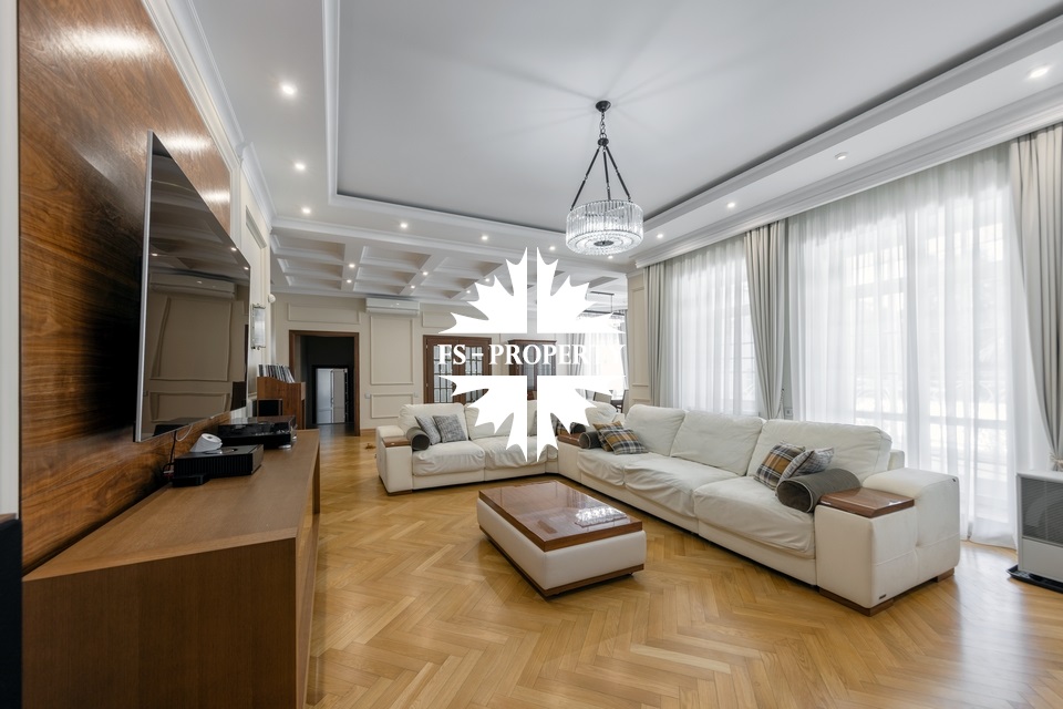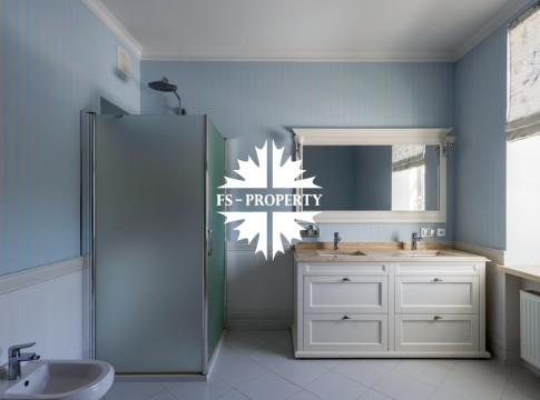 Загородный коттедж площадью 403 м² расположен на участке 24 сотки рядом с живописным лесом. Белоснежный фасад, выполненный в европейском стиле, облицован гладкой штукатуркой и благородным клинкерным кирпичом. Интерьеры выдержаны в светлых спокойных тонах — изящные молдинги, обои с нежным цветочным орнаментом и утончённые светильники наполняют пространство атмосферой уюта, а камин располагает к семейным вечерам. Дом полностью укомплектован комфортной мебелью и встроенной бытовой техникой. Система кондиционирования поддерживает приятный микроклимат в любое время года. Просторная гостиная, объединённая со столовой, кухня, четыре спальни, отдельный кабинет и игровая комната создают идеальную среду для жизни. Дополнительными преимуществами стали встроенный гараж на два автомобиля и квартира для персонала. На участке выполнен ландшафтный дизайн с аккуратным газоном, мощёными дорожками, уличными фонарями, декоративными кустарниками и пушистыми елями. Для отдыха на свежем воздухе построили застеклённую беседку, где можно собираться за чаепитием в кругу близких, а также здесь обустроили мангальную зону для тёплых встреч с друзьями.