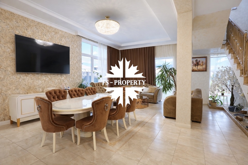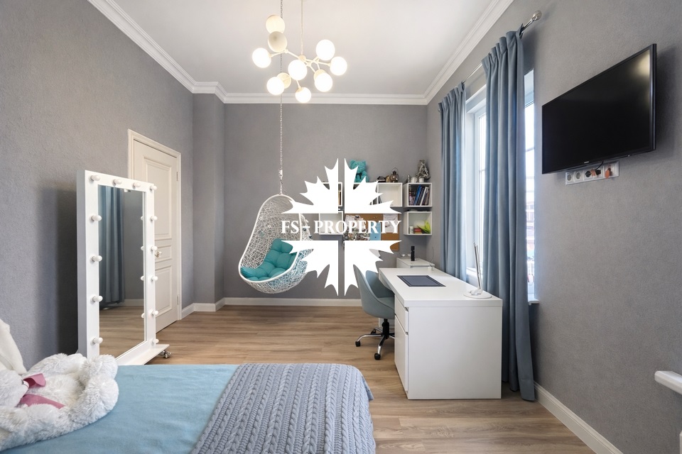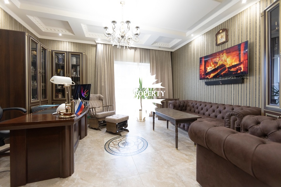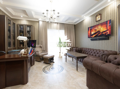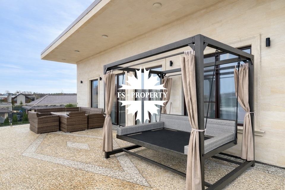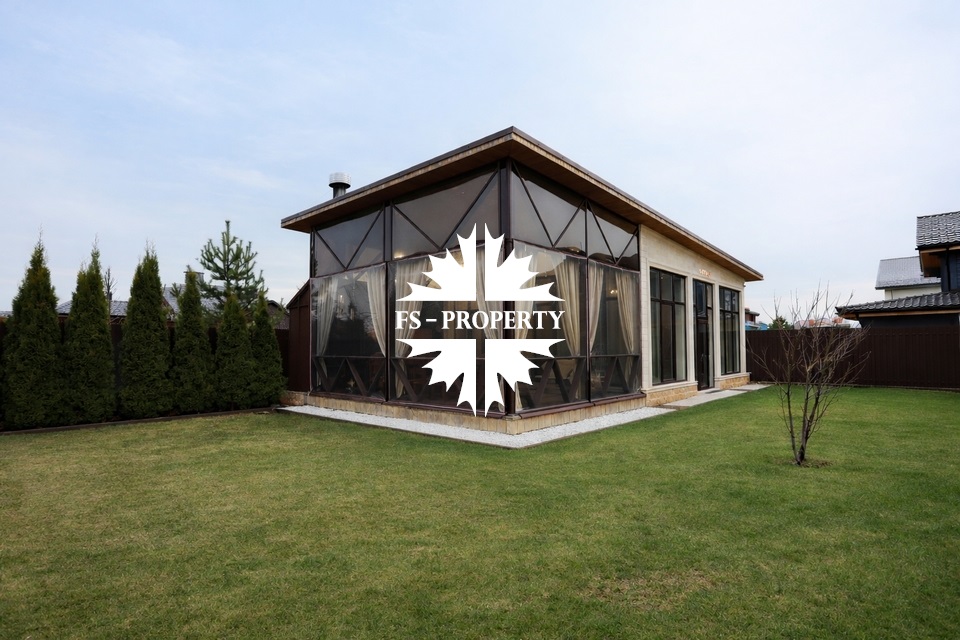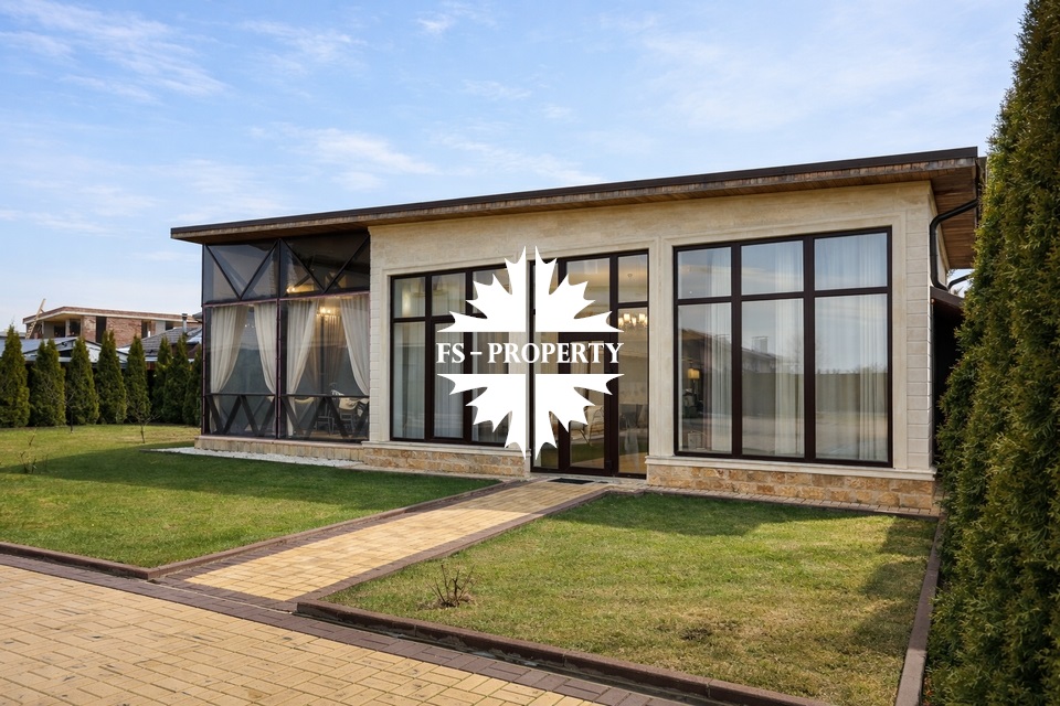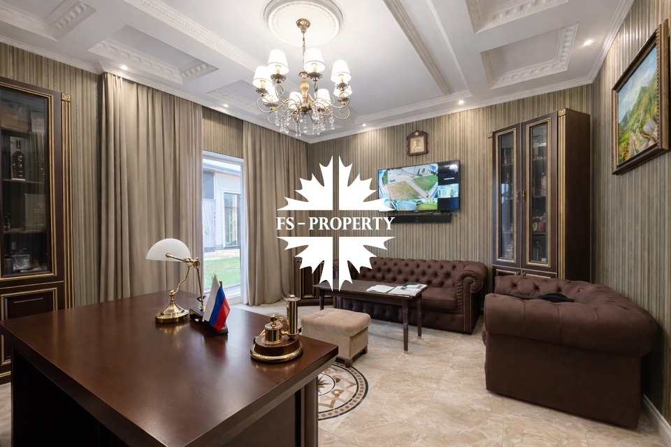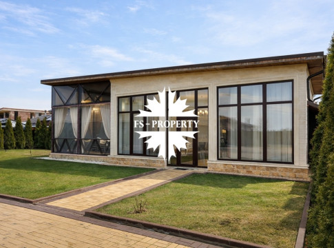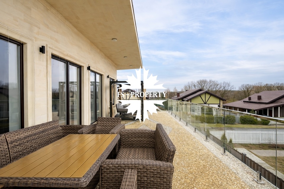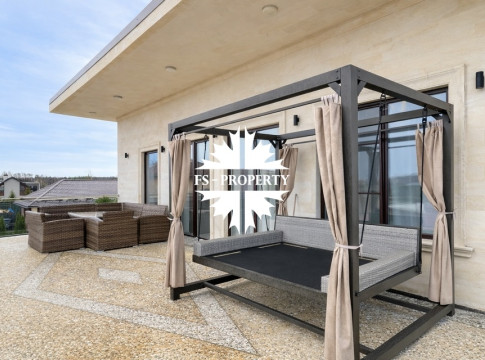 2 этаж: четыре спальни с гардеробными, большая ванная комната, выход на эксплуатируемую кровлю. На участке расположен гостевой дом с просторной гостиной, баней и террасой с зоной BQ.