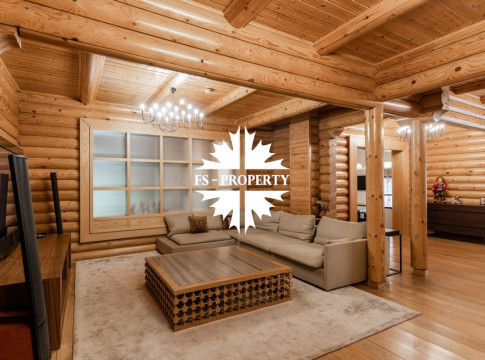 В продаже стильный 2-этажный дом с 5-ю спальнями, площадью 662,1 кв.м на лесном участке в охраняемом коттеджном поселке Горки-1 в 12 км от МКАД по Рублево-Успенскому шоссе. Дом возведен по комбинированной технологии из камня и дерева Honka, выполнен качественный, стильный дизайнерский ремонт. Кухня Siematic с техникой Miele + Gaggenau, мебелировка от Donghia, Bellavista, Poliform, Antonio Lupi, Dornbracht, sauna+sanarium KLAFS. Освещение в доме от Ingo Maurer. Коттедж расположен на ухоженном лесном участке площадью 21,27 сотки. Дополнительно организован дом для персонала 141 кв м, гараж и навес для автомобилей, а также оборудована барбекю зона и беседка для уютных посиделок.