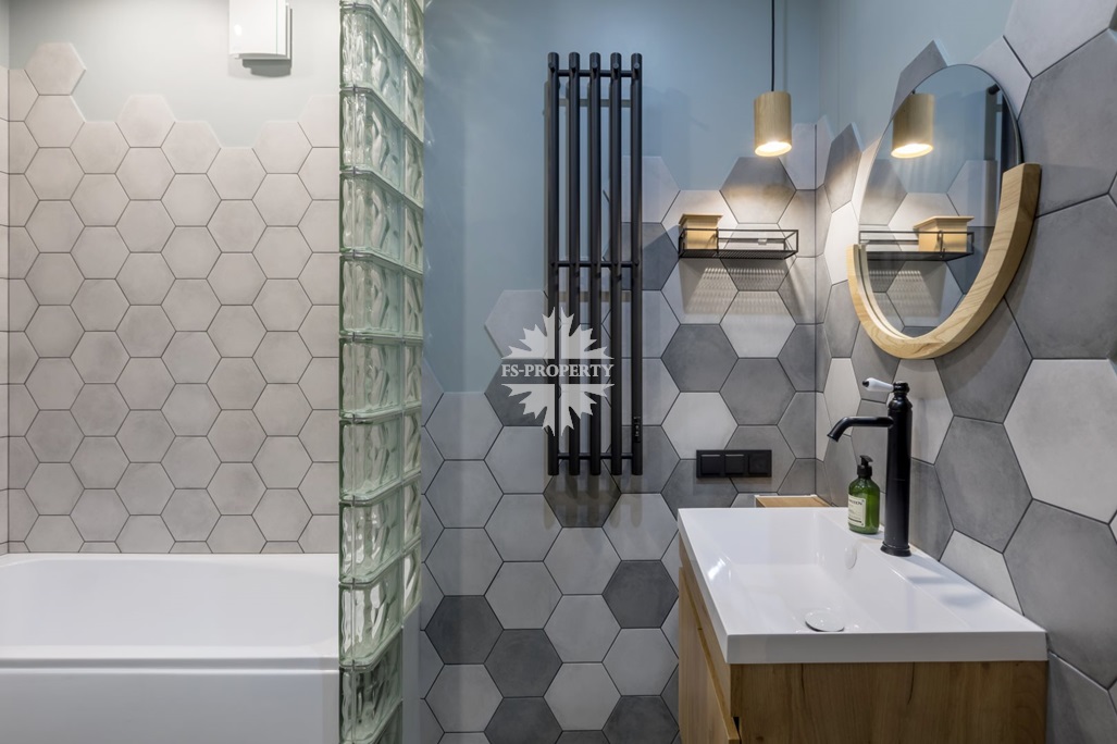 Сантехника Villeroy&Boch, Jacob Delafon, бытовая техника Smeg, Electrolux. Пол: паркетная доска - натуральный дуб, плитка - с подогревом.