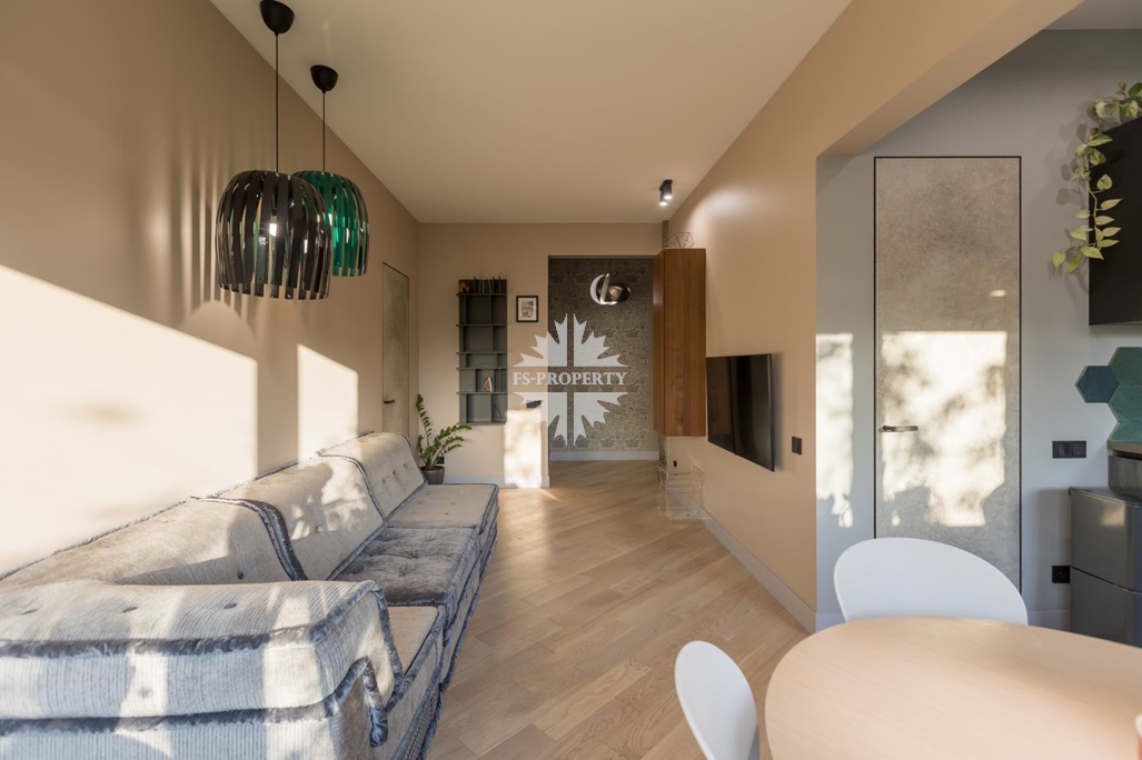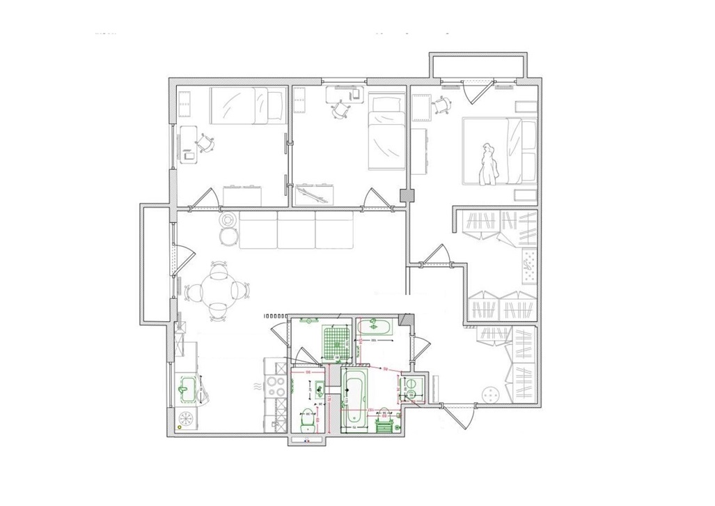 Функциональная и грамотная планировка: кухня-столовая, гостиная, спальня со своей гардеробной, 2 детские спальни, 2 санузла (с ванной и душевой), постирочная, прихожая, 2 балкона.