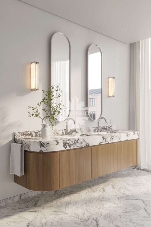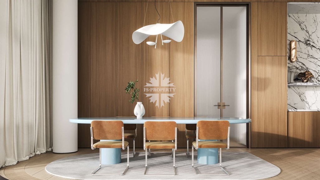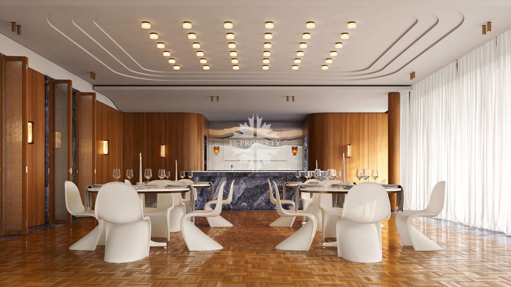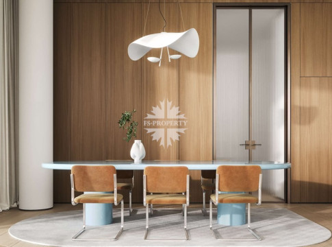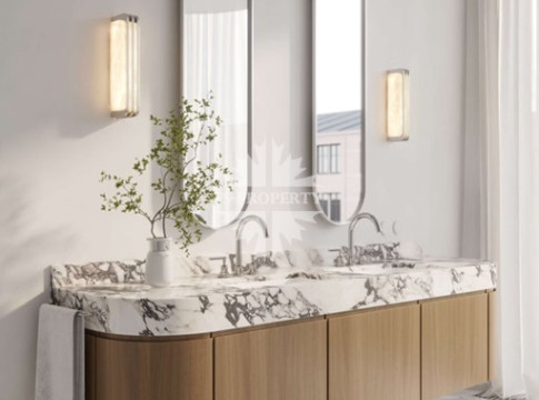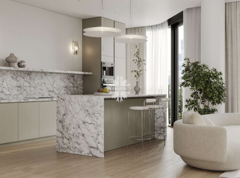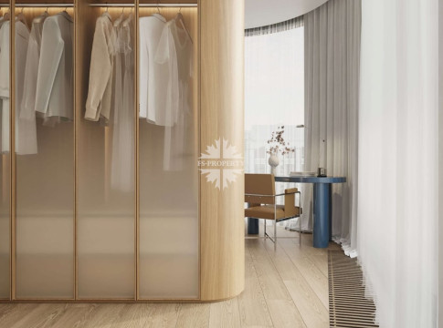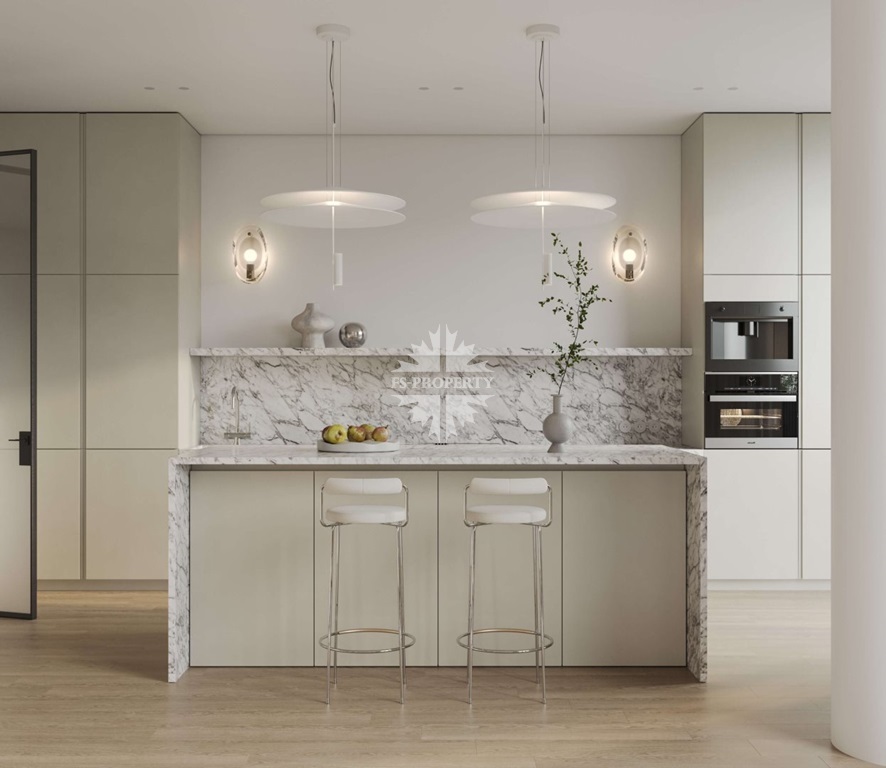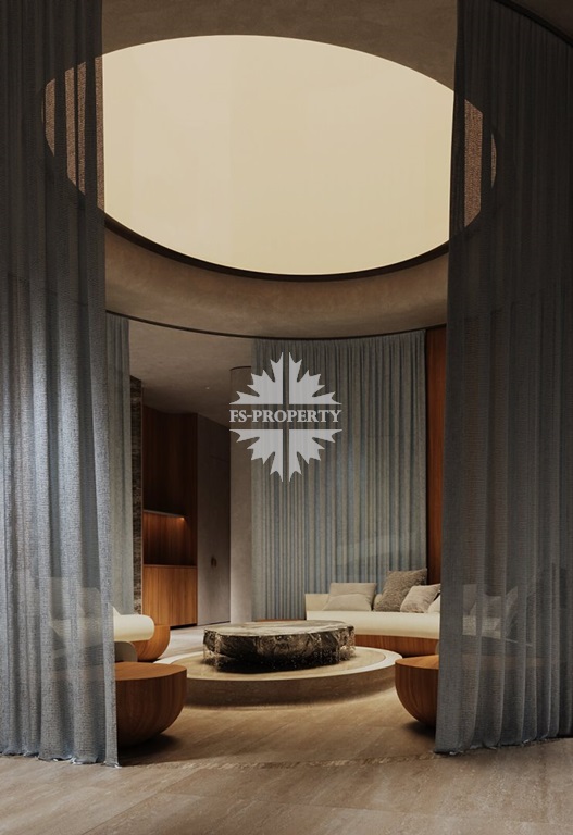Квартира предлагается к продаже с премиальной отделкой и полностью оборудованными санузлами и кухней. В отделке использованы натуральное дерево и камень.