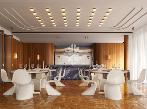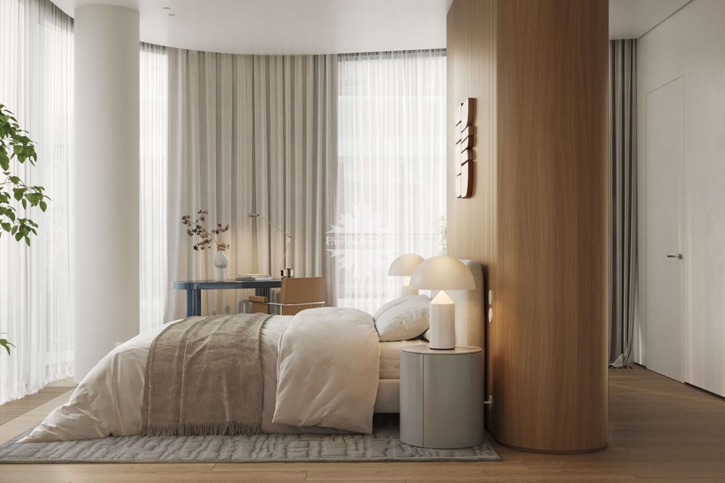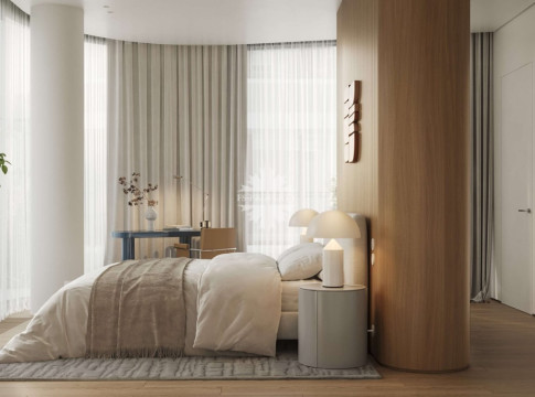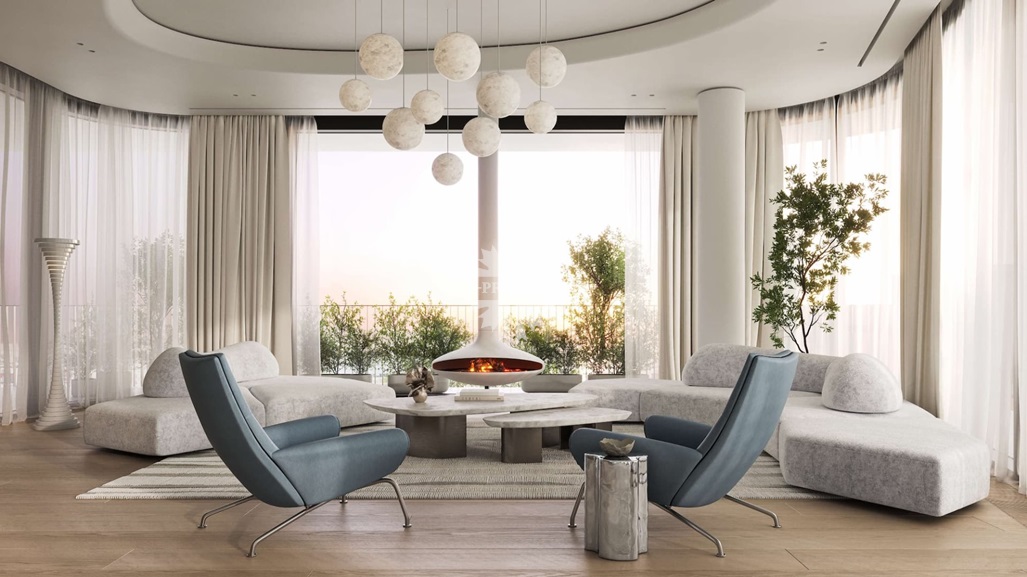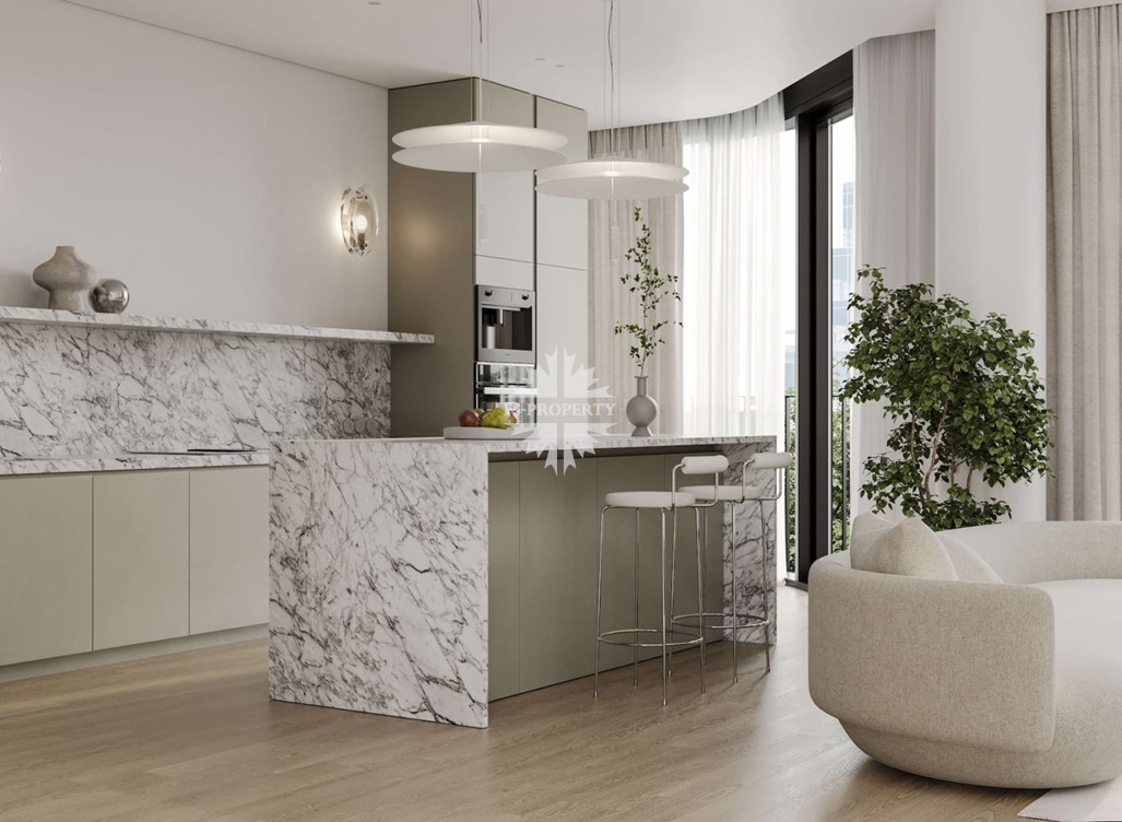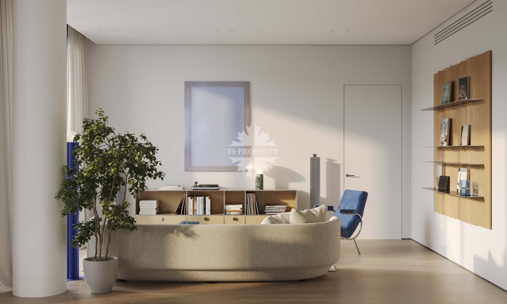 Квартира предлагается к продаже с премиальной отделкой и полностью оборудованными санузлами и кухней. В отделке использованы натуральное дерево и камень.