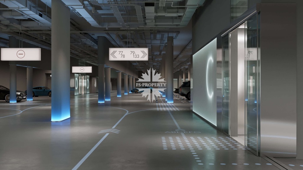 Подземный паркинг спроектирован для автомобилей представительского класса и спорткаров. Предусмотрены зарядки для электромобилей, автомойка и услуги валет-паркинга: машину можно оставить у входа и забрать ее чистой в удобное время.
