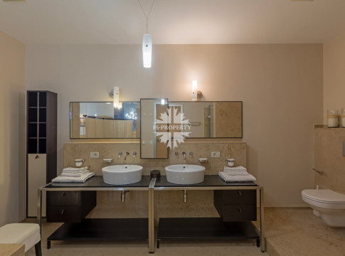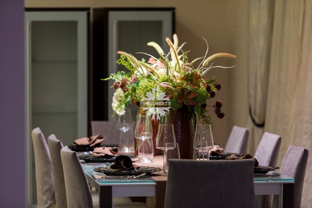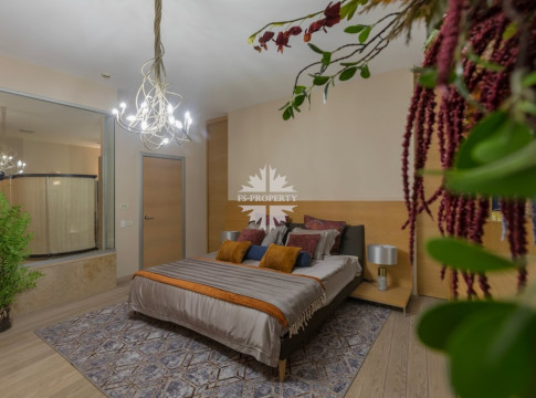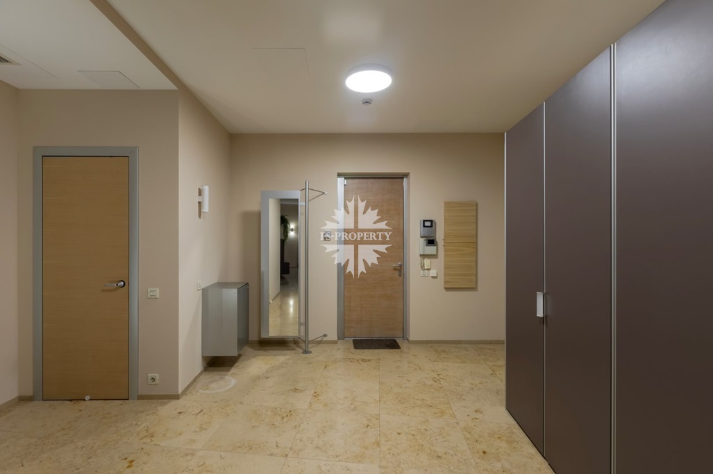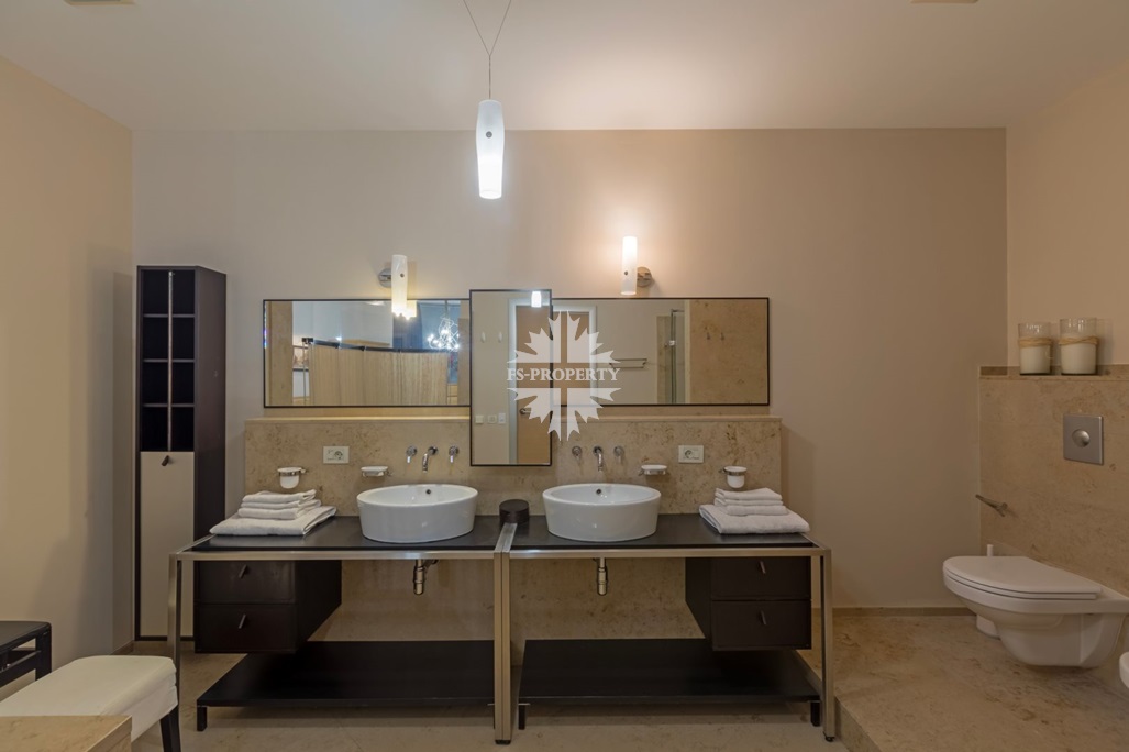 В отделке использованы дорогие материалы, в том числе массив дуба, мрамор.