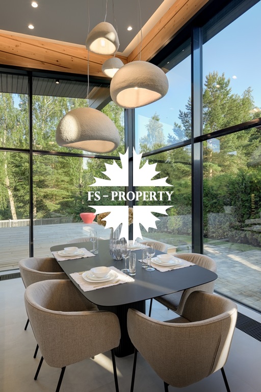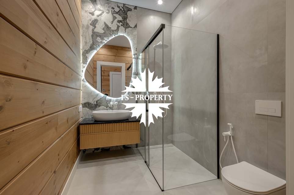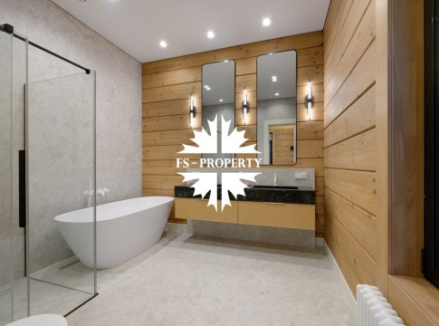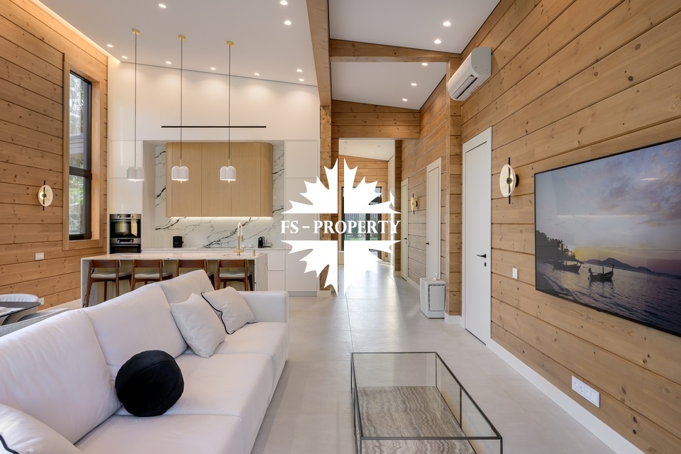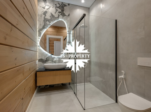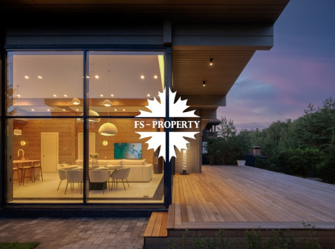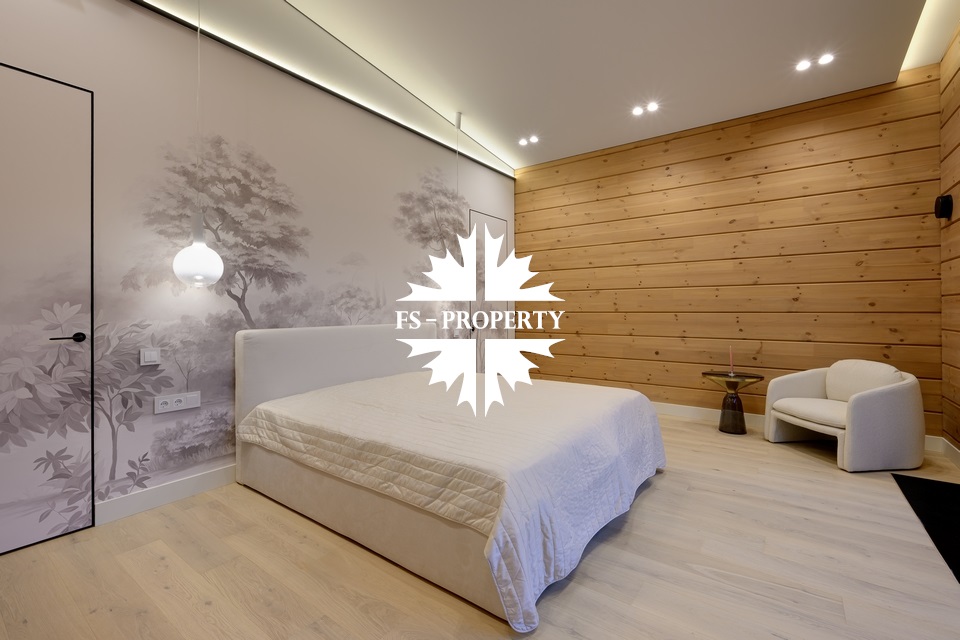 Дом, площадью 245 кв.м, расположен на просторном участке 10 соток с лесными деревьями и ландшафтным дизайном. Планировкой предусмотрены: просторная кухня-гостиная-столовая, 4 спальни, 3 санузла. Дом полностью меблирован, с отделкой "под ключ".