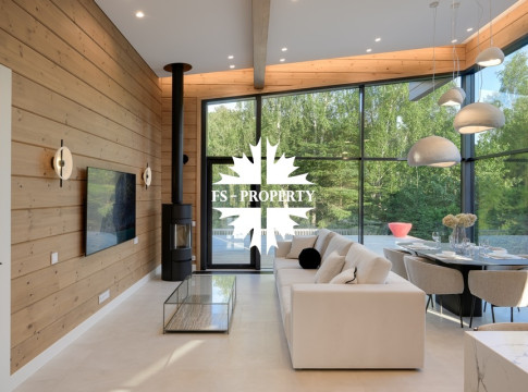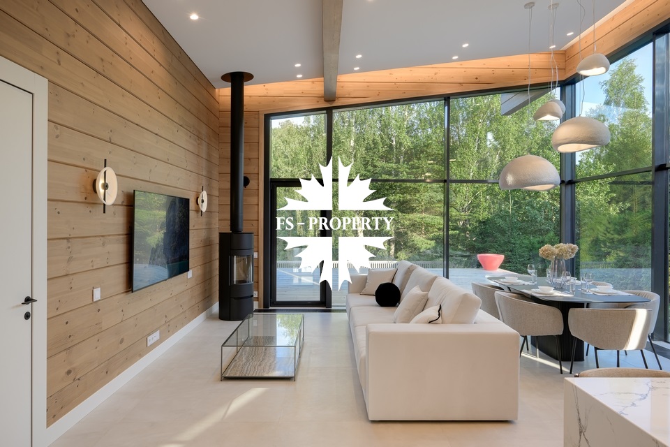 Предлагается к продаже новый деревянный одноэтажный дом из клеёного бруса — материал, который ценят за экологичность, долговечность и благородную фактуру. В этом доме пространство, дерево и свет соединяются в гармонии с природой, панорамные окна открывают вид на лесной массив, превращая окружающий пейзаж в часть интерьера и создавая ощущение полной свободы.