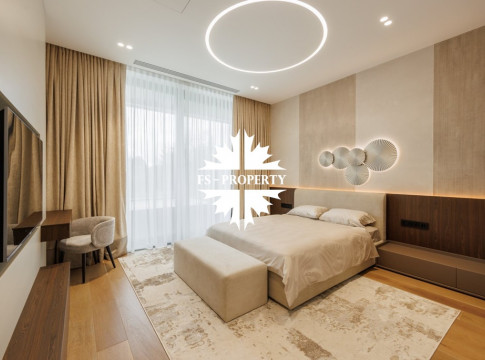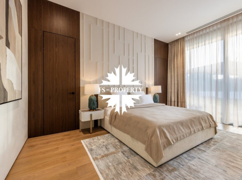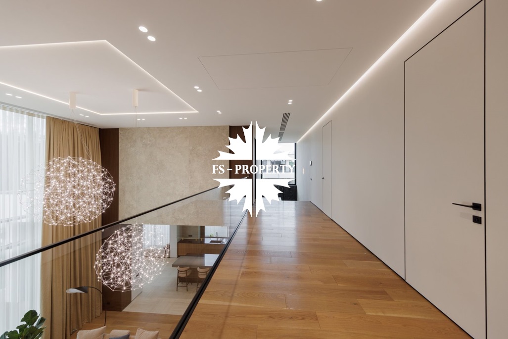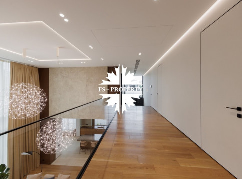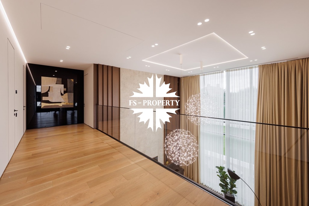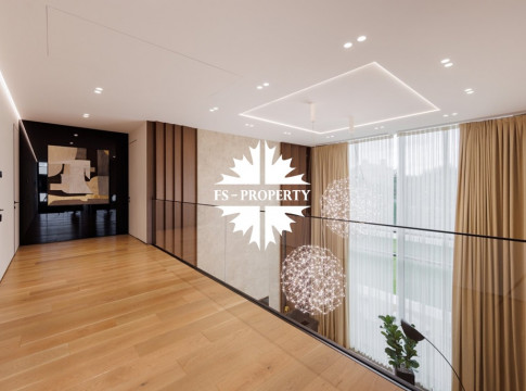 2 этаж (229м): мастер-блок, включающий просторную хозяйскую спальню с гардеробной и санузлом, вторую спальню с собственной гардеробной и санузлом, гостевой блок с гостевой спальней и гостевым санузлом.