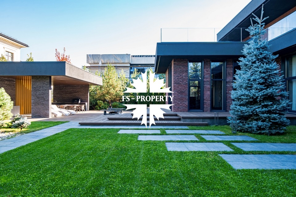 На участке выполнен ландшафтный дизайн с перголами, зелёными изгородями и уютными дорожками. Просторная терраса приглашает к отдыху на свежем воздухе и становится естественным продолжением дома в летние месяцы. Уличная кухня оборудована техникой Bosch и грилем Napoleon, что делает летние вечера особенно приятными.