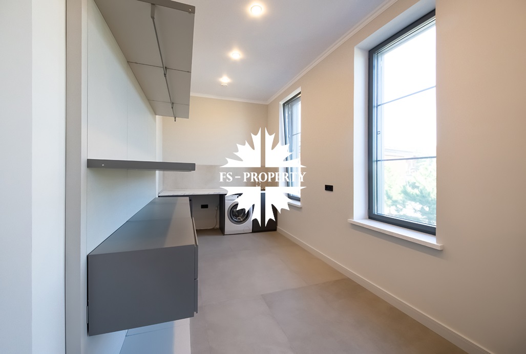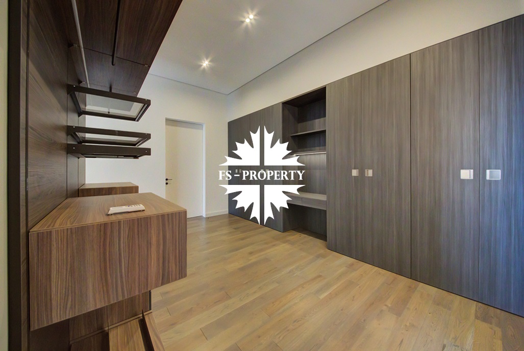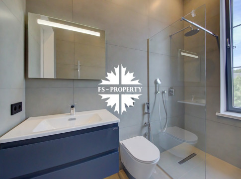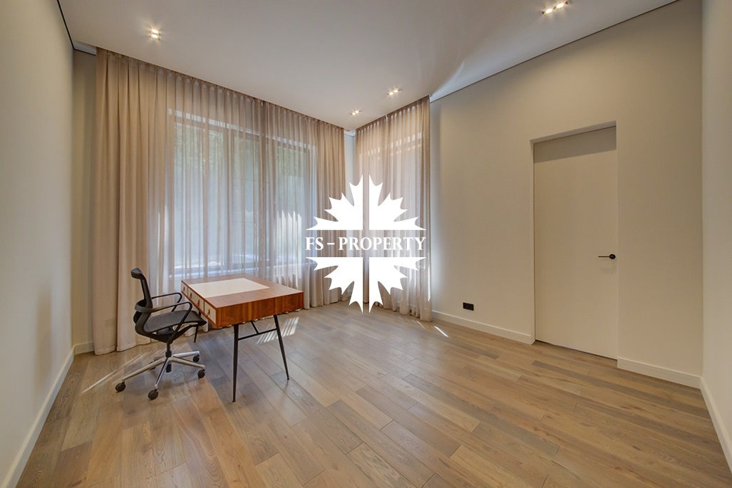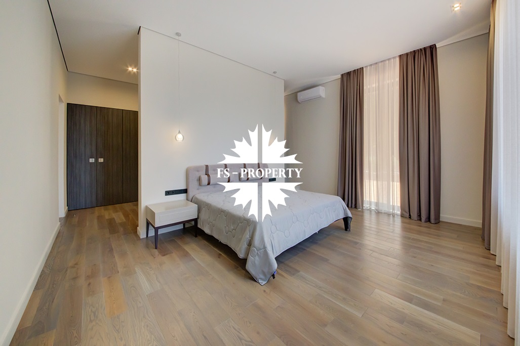 В доме удобная планировка: мастер-спальня со своим санузлом, ванной комнатой и гардеробной, спальня с санузлом, кабинет, две детские спальни с санузлом, гостевой санузел, хозяйственная комната, хаммам. Гостиная с каминным залом и гостиная с зоной отдыха, бойлерная, система очистки воды. Из кухонной зоны есть выход на просторную веранду и зону барбекю.