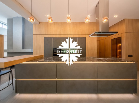 В отделке дома использовались высококачественные материалы премиум-класса. Мебель и техника от известных премиальных марок, таких как: Maxalto, Bo Concert, Neopoliscasa, Nolte, Alf Home, техника — Gaggenau, Neff, Falmec, AEG.