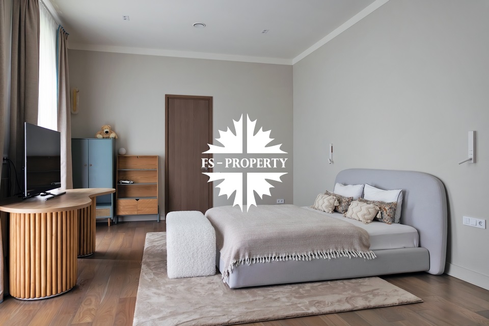 В доме предусмотрено всё для комфортной жизни: просторная гостиная-столовая с кухней и отдельной технической кухней, холл галерея, гардеробные, 4 спальни — каждая со своим с/у и гардеробной, а также кабинет и игровая комната в двух уровнях.