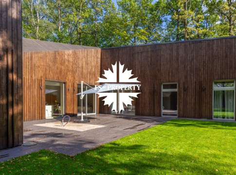 Технологичность не уступает эстетике: приточно-вытяжная вентиляция, кондиционирование, повышенное давление воды, водоочистка, электроприводы штор, датчики протечек, видеонаблюдение, закладные под бассейн на участке, мощность 25 кВт электричества.