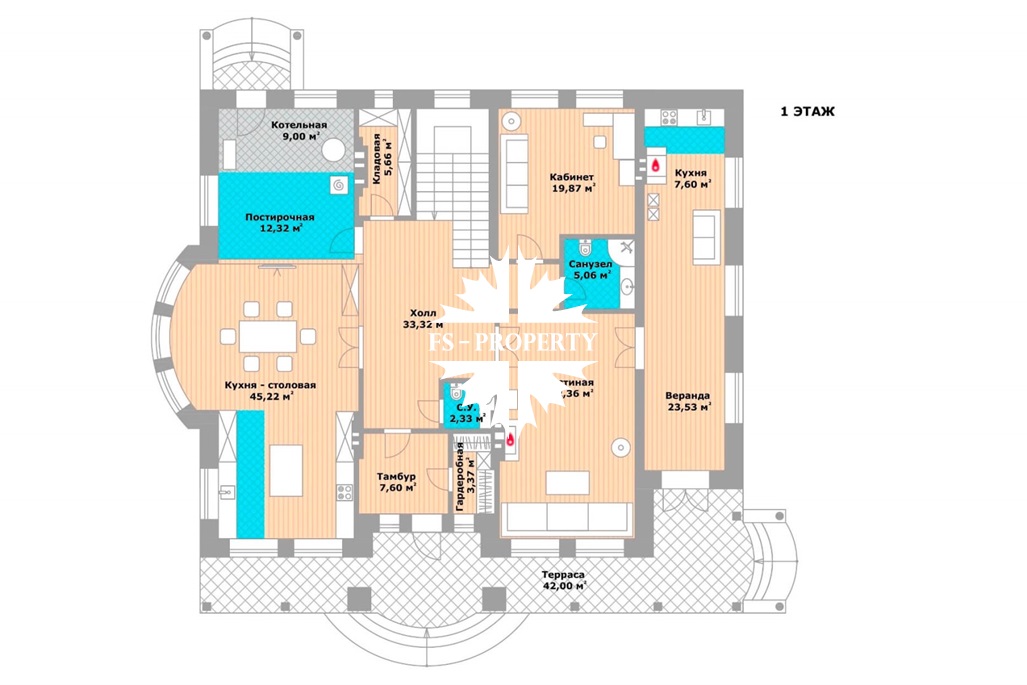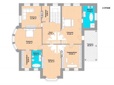 В доме: 5 спален (одна из них - на первом этаже), гостиная с камином, большая кухня-столовая с эркером, теплая веранда (зимний сад) с кухонной зоной и выходом на террасу, террасы на первом и втором этажах, мансардный этаж свободной планировки “под чистовую отделку”, постирочная, котельная и кладовые.