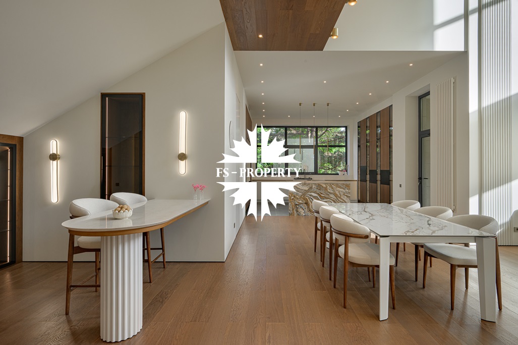 Предлагается на продажу новый дом 2024 года постройки, частично меблирован ( встроенная кухня, остров, стеллажи и сервант в гостиной), готов к проживанию в охраняемом КП «Резиденции Бенилюкс».