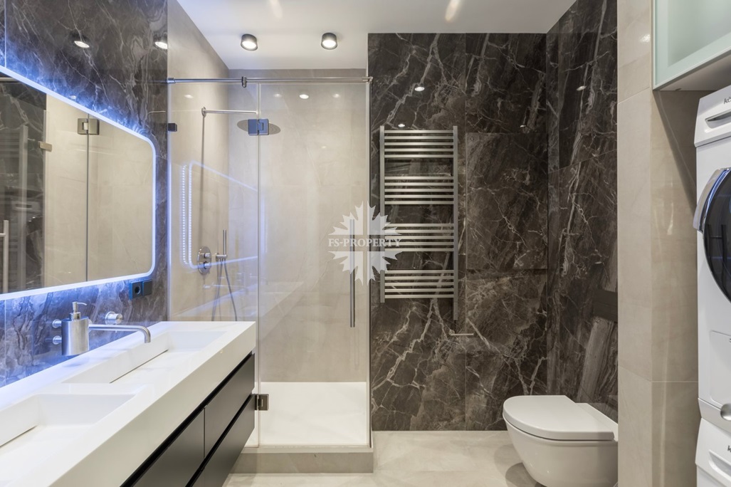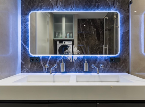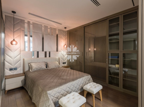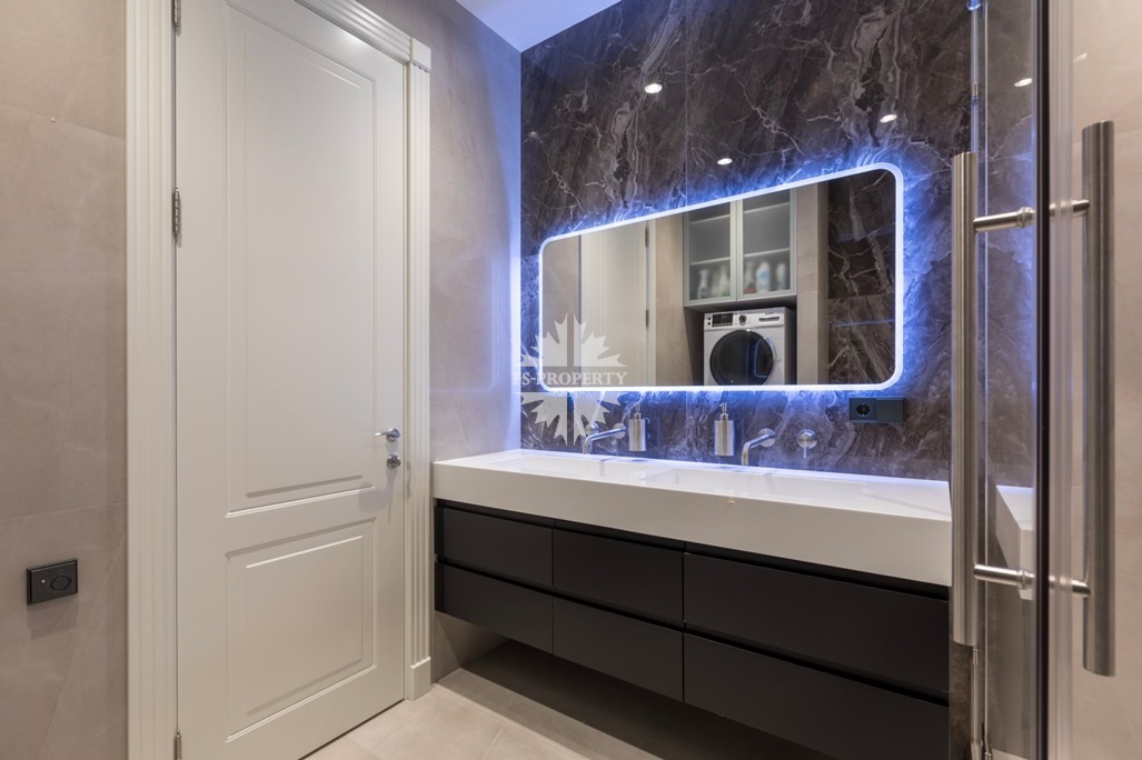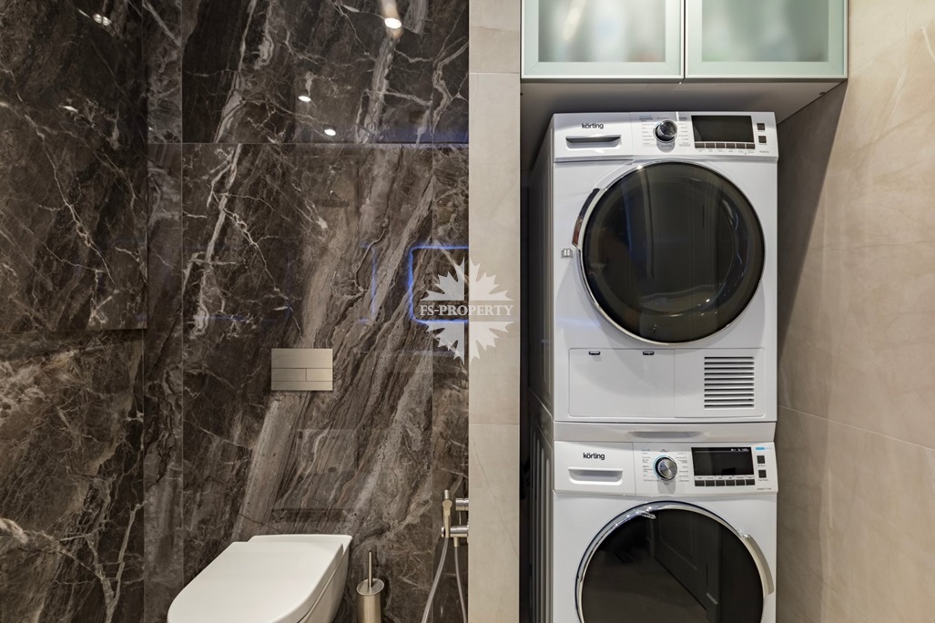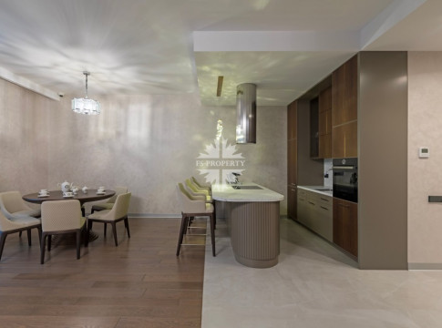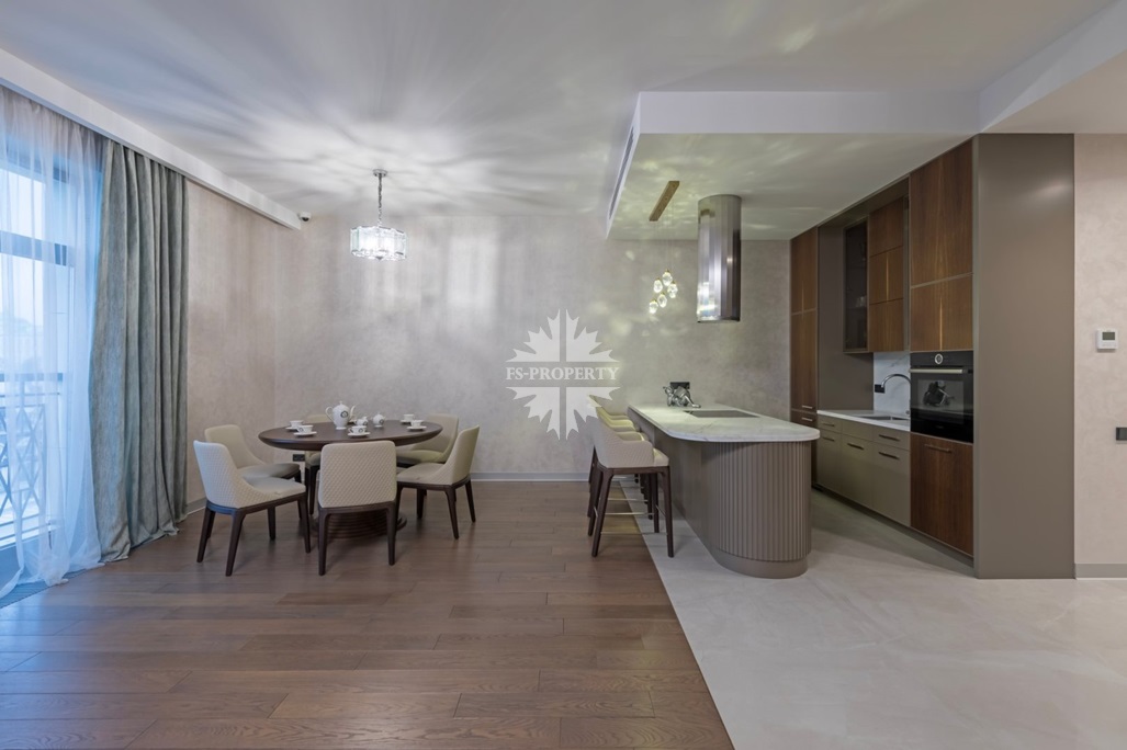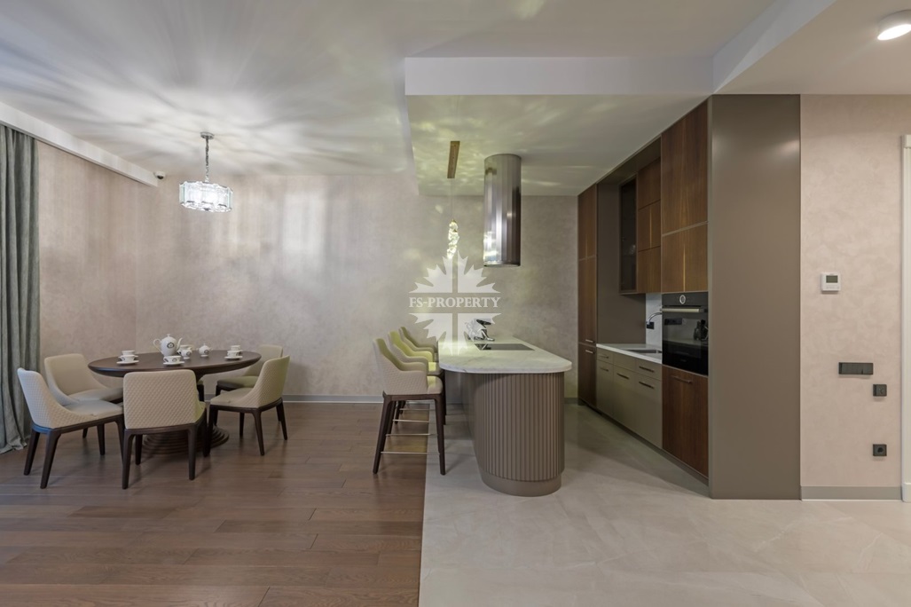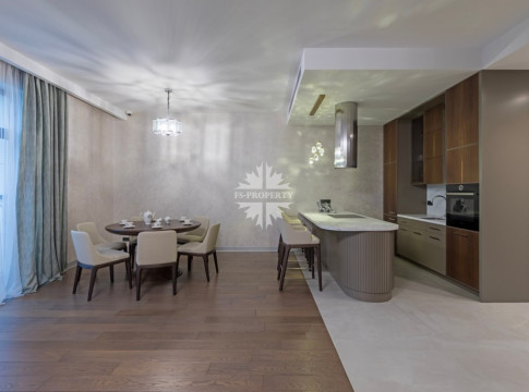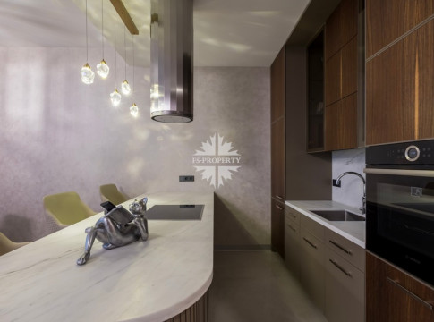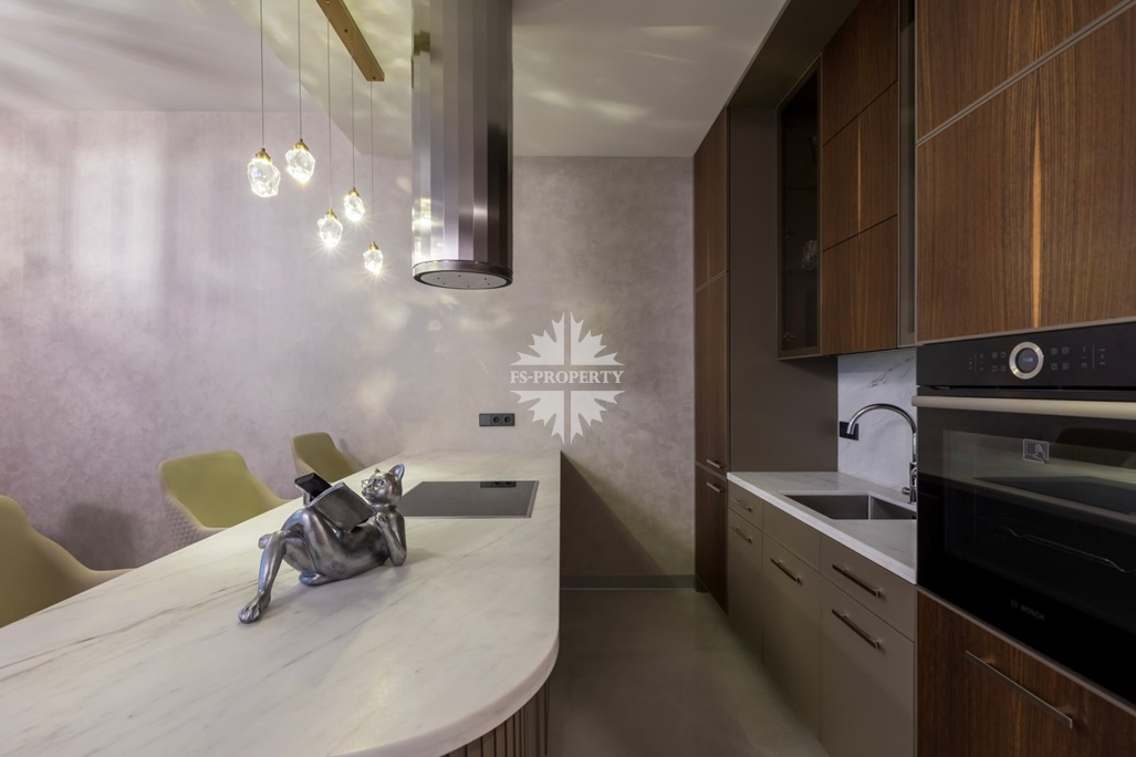 Отделка высочайшего уровня по индивидуальному дизайн проекту с применением натуральных дорогостоящих материалов, бытовая техника производства Германии (Smeg, Bosch).