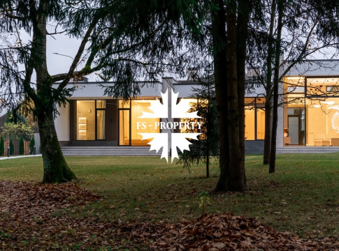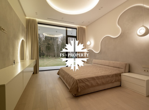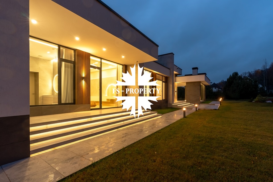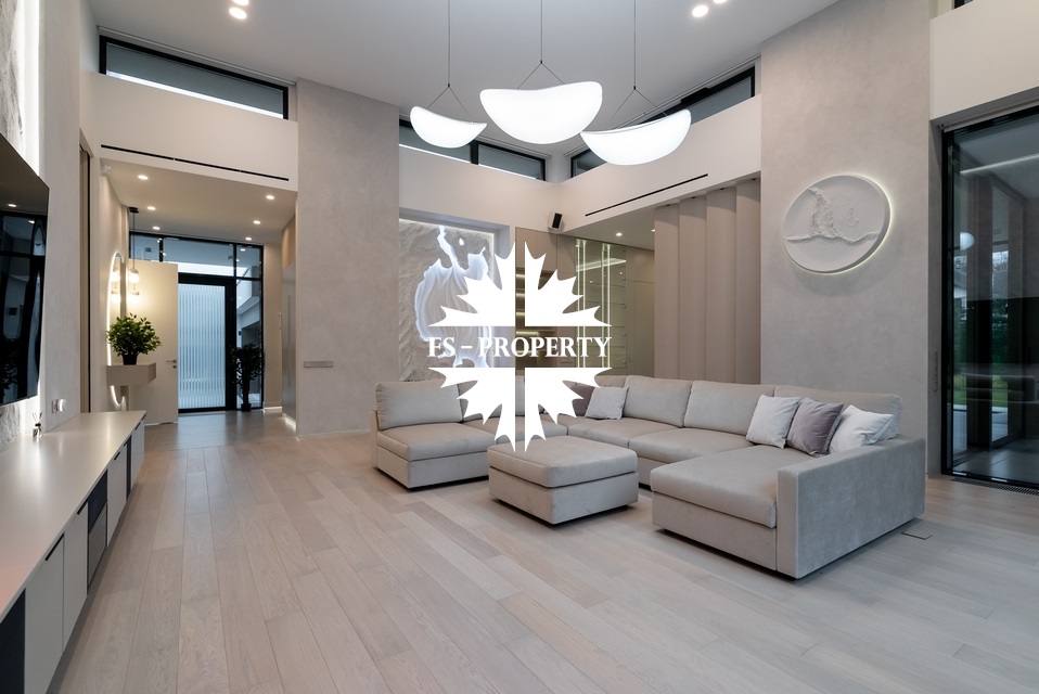 Предлагается к продаже полностью готовый к проживанию уникальный одноэтажный дом площадью 414м на участке 65 соток. Планировка: просторная гостиная + кухня-столовая, 3 спальни и 2 детских комнаты. При строительстве использовались лучшие материалы и технологии. Монолитный утепленный фундамент с гидроизоляцией. Теплые и дышащие стены из керамического блока Porotherm с дополнительной теплоизоляцией. Фасад комбинированный — керамогранит крупного формата, штукатурка и натуральный ясень. Панорамное остекление от пола до потолка в алюминиевых профилях с терморазрывом. Приточно-вытяжная вентиляция с климат-контролем, система Умный дом (управление светом, шторами, климатом и безопасностью со смартфона), бесшовный Wi-Fi по всему дому. Авторская кухня и мебель, изготовленные на заказ. Готовый домашний кинотеатр профессионального уровня и мультирум-система. Теплый гараж на 2 авто с дополнительными зонами: серверная, рукомойник, место для гигиены питомцев. Продолжение гостиной — всесезонная уличная веранда с: зоной барбекю, подвесным камином и подовой печью, панорамным остеклением и автоматическими дверями.