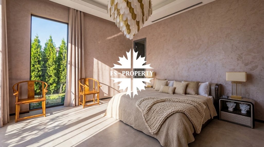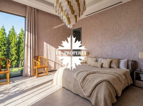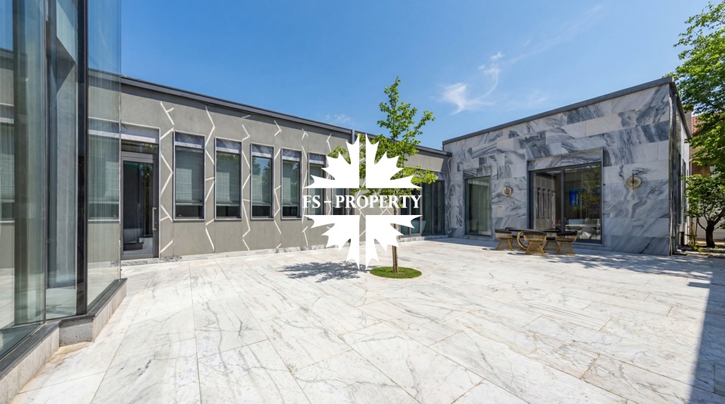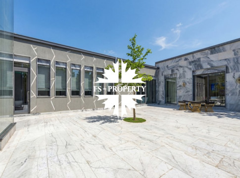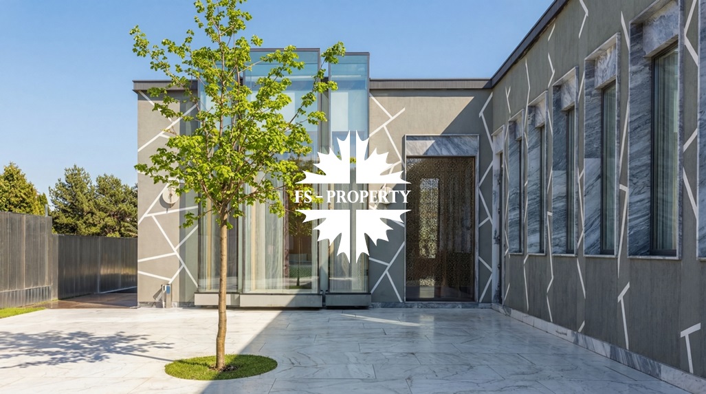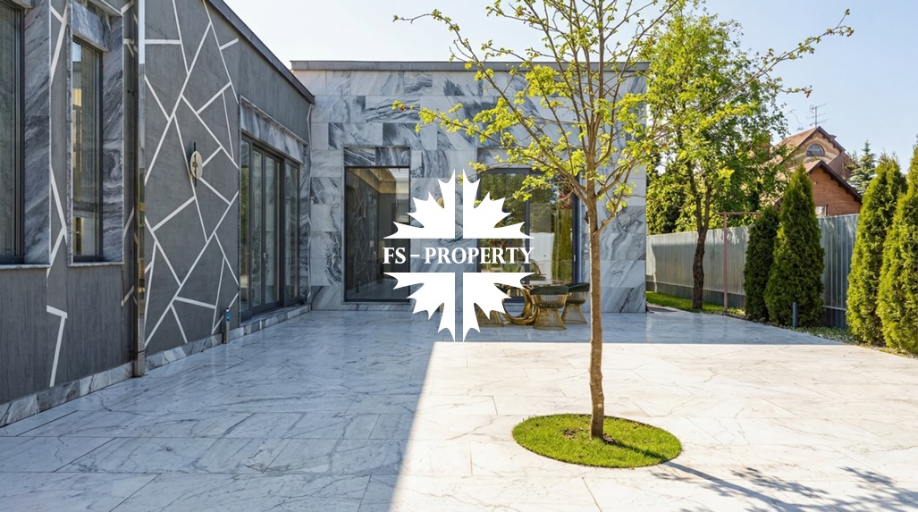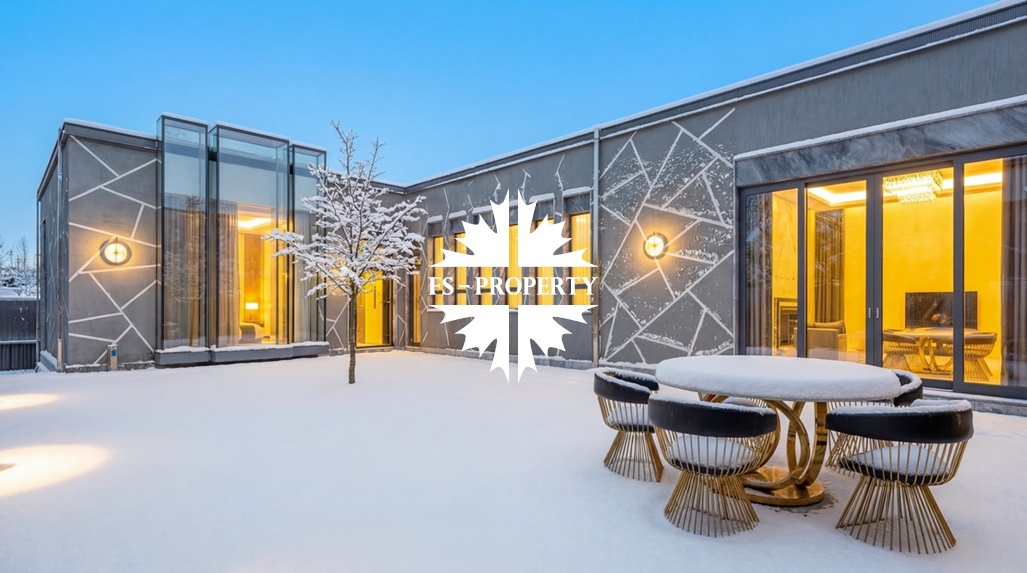 В охраняемом коттеджном посёлке «Усово Плюс» на участке 8.5 соток представлен образец современной архитектурной мысли — одноэтажный дом площадью 402 м². Современный и лаконичный фасад, облицованный серым мрамором, задаёт тон исключительной изысканности. Принцип чистых линий и минимализма продолжается внутри, где царит интерьер в стиле «тихой роскоши»: каждая деталь служит гармонии, комфорту и визуальному покою. Грамотно продуманная планировка создаёт бесшовное жилое пространство, наполненное светом. Безрамное панорамное остекление стирает границу между интерьером и ландшафтом, наполняя дом солнечным светом и создавая эффект парящего объёма. Безупречное инженерное оснащение: приточно-вытяжная вентиляция с рекуператором, тёплые полы и канальное кондиционирование по всему дому создают идеальный микроклимат круглый год.
