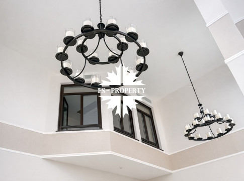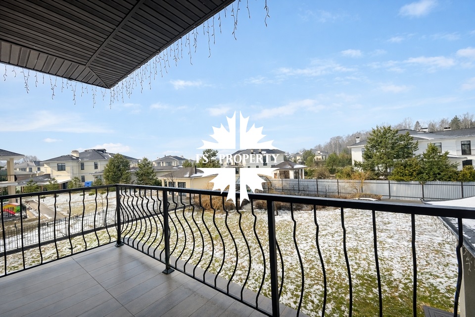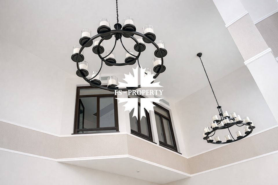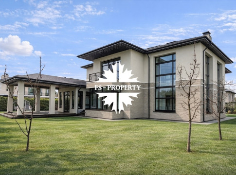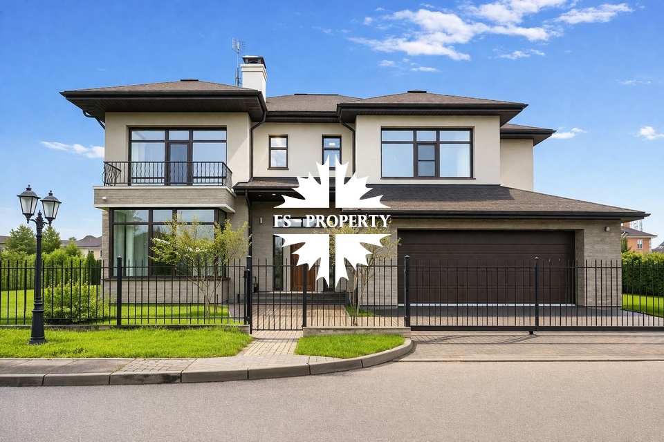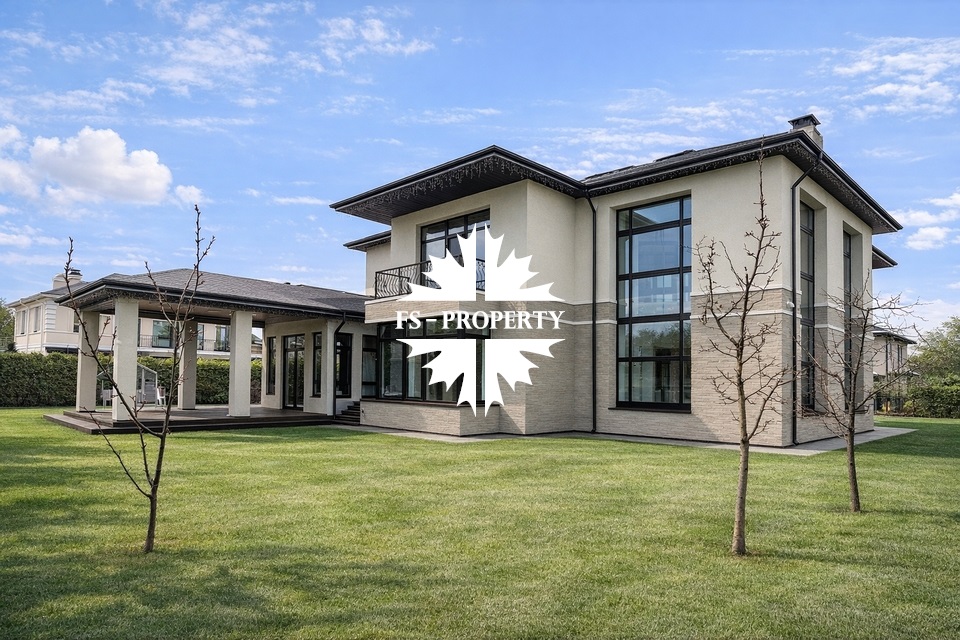 Планировка тщательно продумана: на первом этаже расположены гостиная, кухня, кабинет, спа-зона с хаммамом и гараж на два автомобиля; на втором этаже — приватный мастер-блок, детские и гостевые спальни. На участке также предусмотрен отдельный дом для персонала.