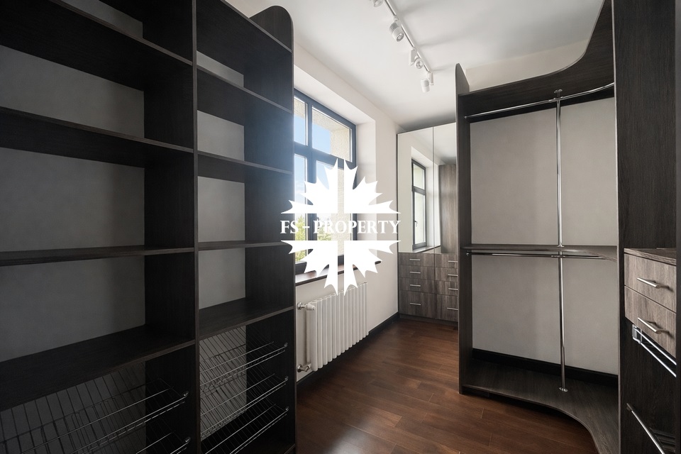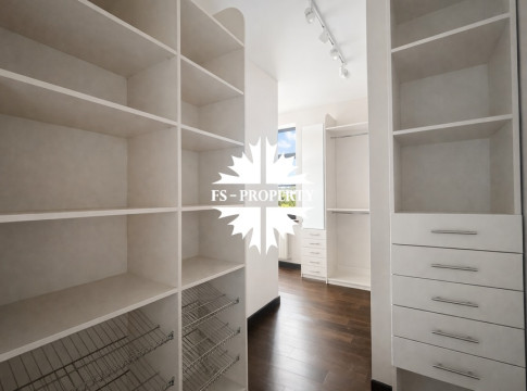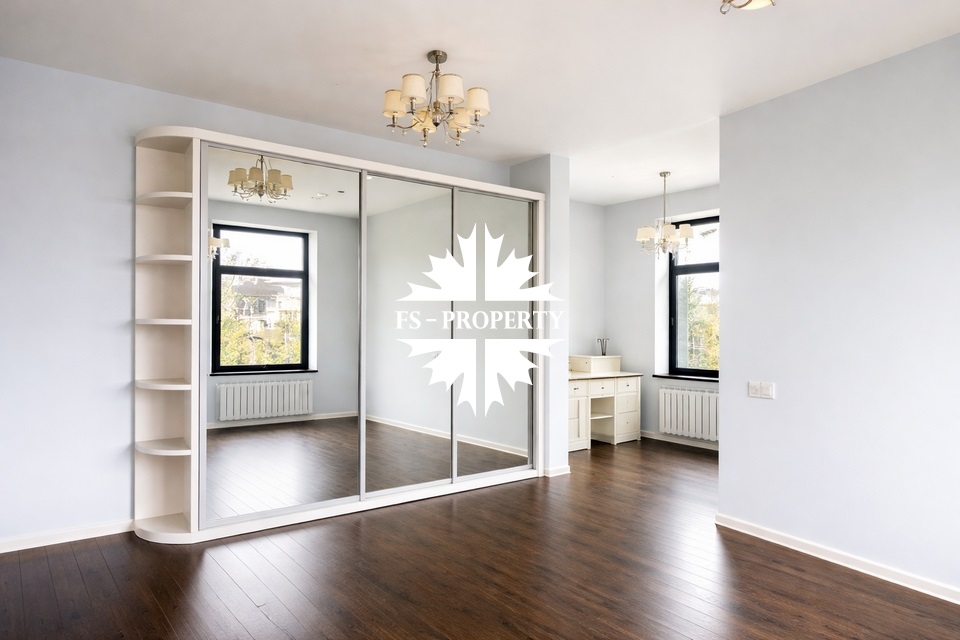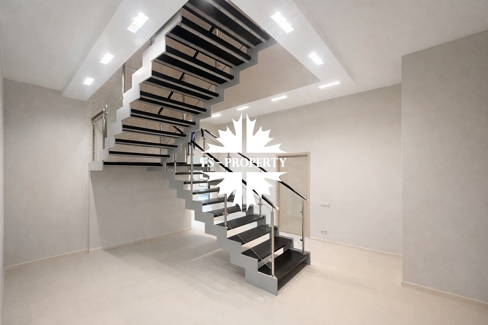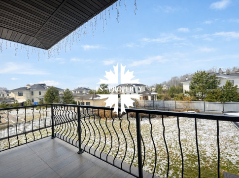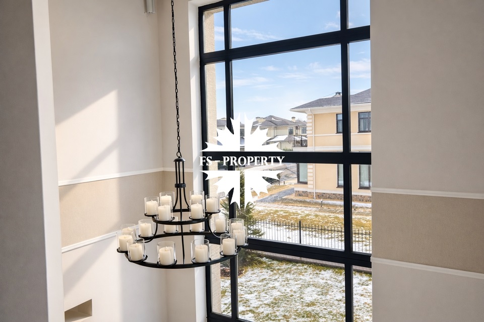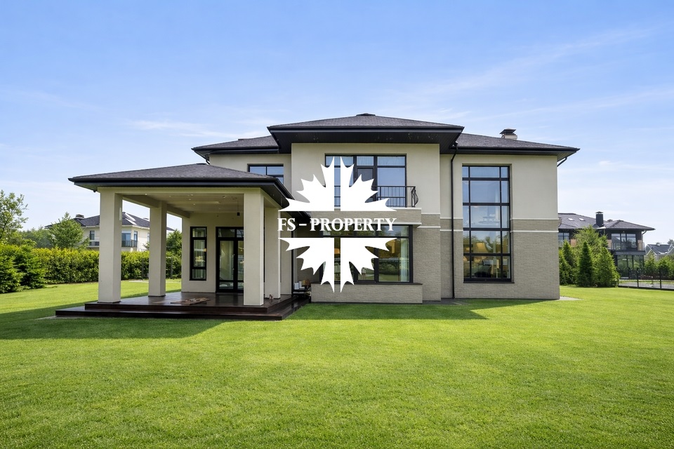 Планировка тщательно продумана: на первом этаже расположены гостиная, кухня, кабинет, спа-зона с хаммамом и гараж на два автомобиля; на втором этаже — приватный мастер-блок, детские и гостевые спальни. На участке также предусмотрен отдельный дом для персонала.