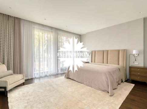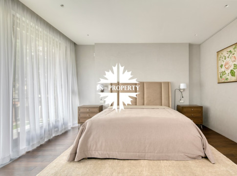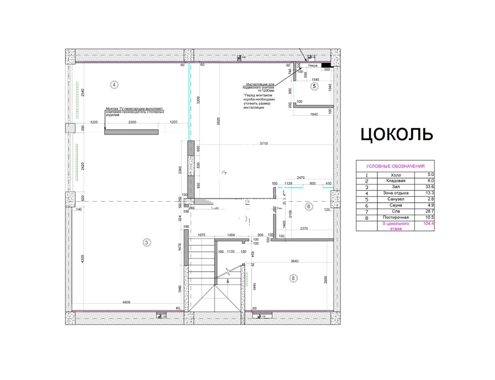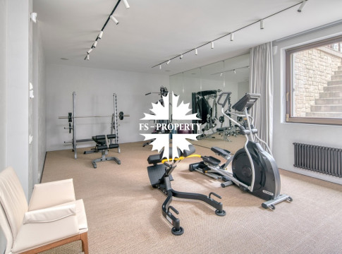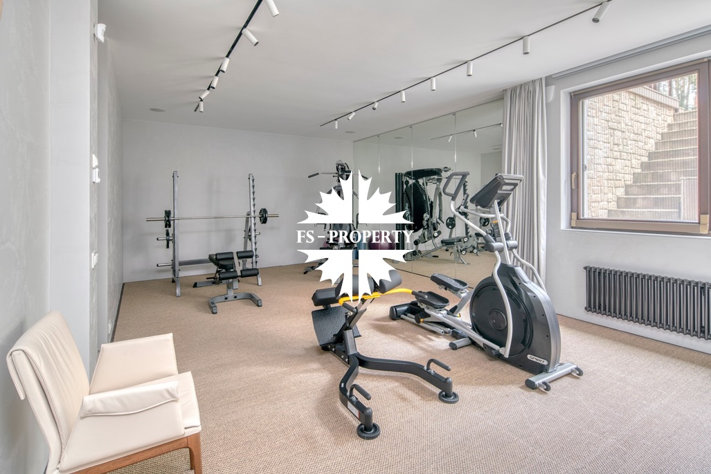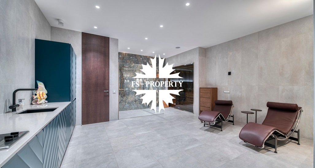 Цокольный этаж: зона СПА с сауной, душевой, кухней, туалетом, помещением с дополнительным гостевым спальным местом, спортивным залом. Отдельно выполнена постирочная комната и кладовая.