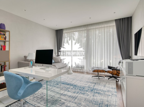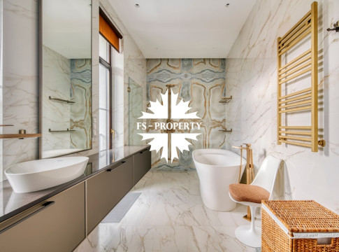 Сантехника Hansgrohe, Duravit. Кухня Leicht, техника на кухне и в постирочной - Miele. Камин отделан мраморными слэбами, топка Hoxter.