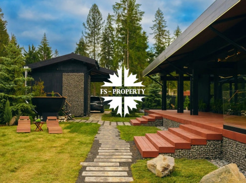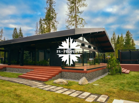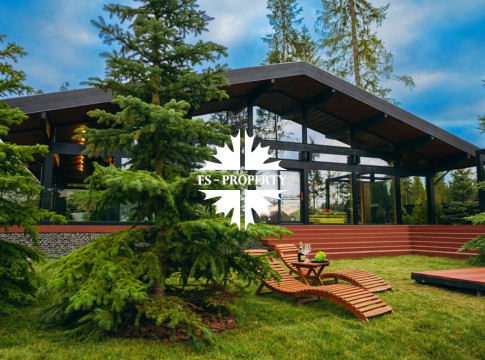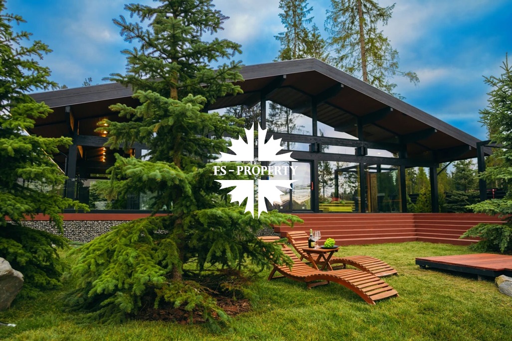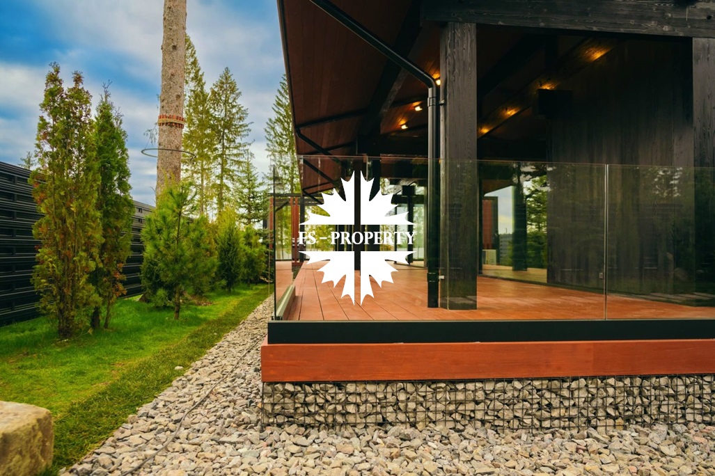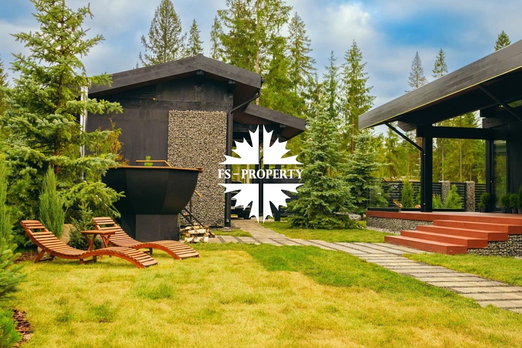 ГОТОВАЯ КОЛЛЕКЦИОННАЯ ПРЕМИУМ ВИЛЛА LERMONTOV В СТИЛЕ ШАЛЕ ФАХВЕРК С ВЕКОВЫМИ ЕЛЯМИ И ЛИЧНОЙ АКВАТОРИЕЙ В ХВОЙНОМ РЕЛИКТОВОМ ЛЕСУ.