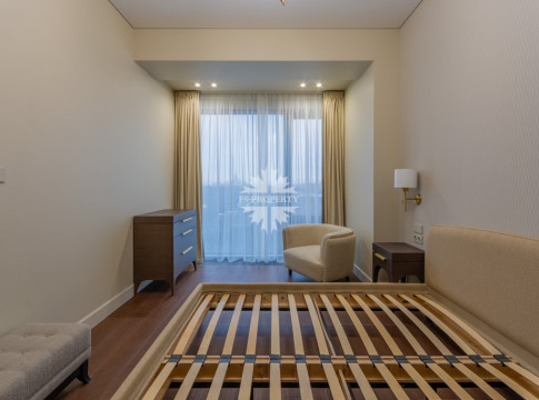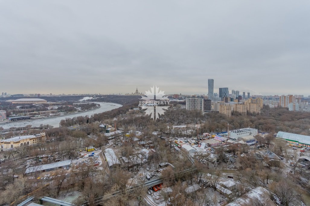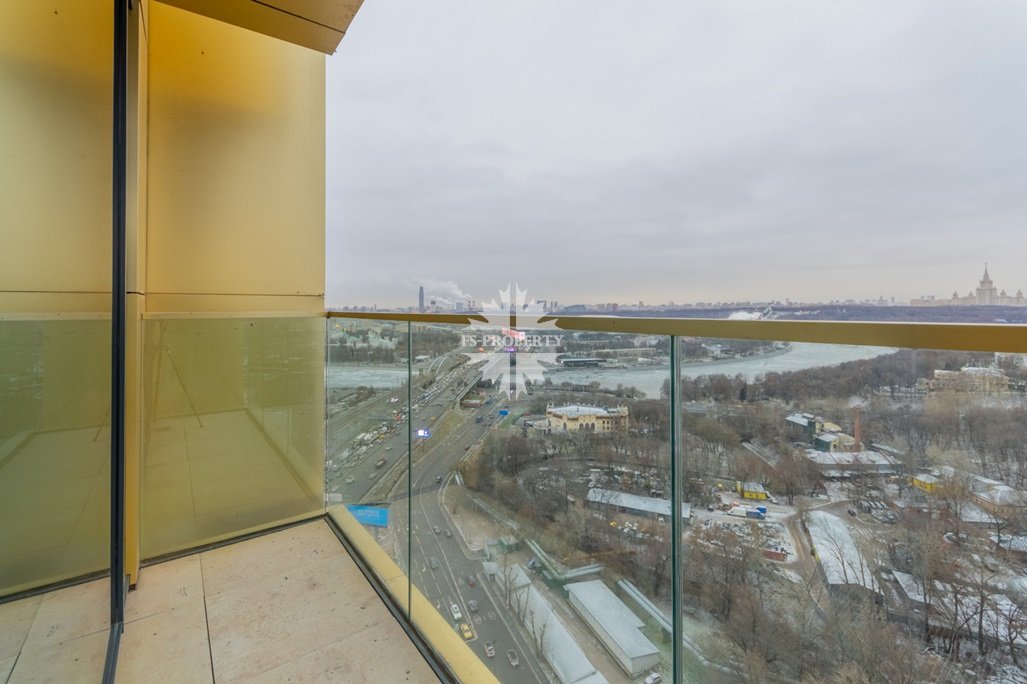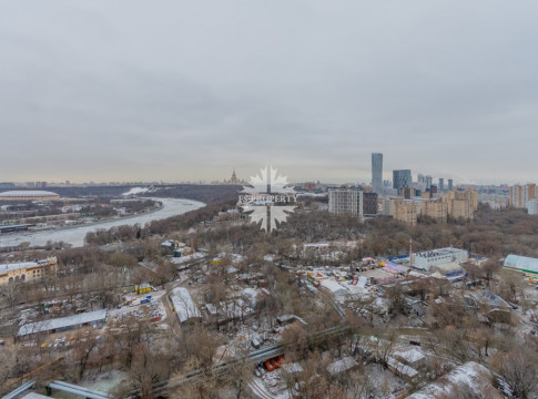 Это самая видовая квартира в комплексе: окна выходят на восток на набережную реки, здание МГУ им. Ломоносова и парк Воробьёвы горы.