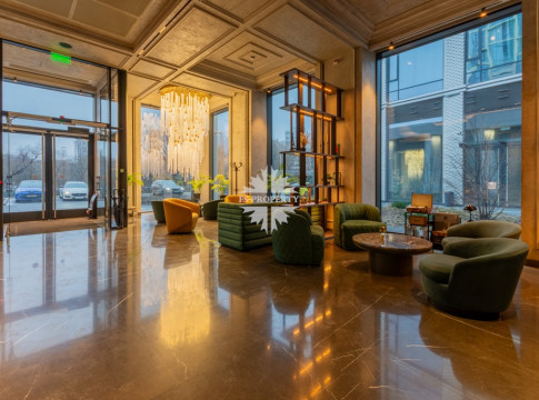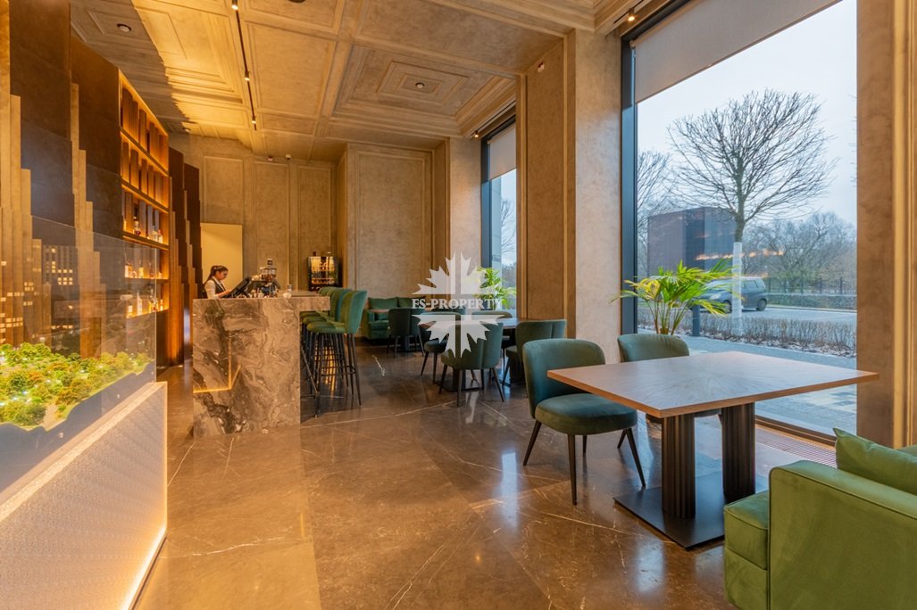 Инфраструктура комплекса: Архитектура разделяет общественные и приватные зоны. В центральном лобби — служба консьержей, переговорные, зоны отдыха, комнаты для приёма онлайн‑заказов с примерочными, кафе и сервисы, выходящие на благоустроенную улицу. Через лобби — доступ на закрытую территорию.